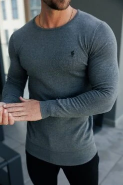 FS Charcoal Crew Neck Knitted Jumper With FS Branding – FSN198