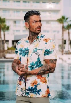 Father Sons Hawaiian Boxy Vibrant Floral Print Stretch With Revere Collar Short Sleeve – FS948