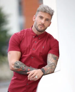 Father Sons Super Slim Stretch Classic Ox Blood Short Sleeve With Button Down Collar – FS820