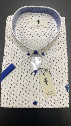 Father Sons White With Navy / Red Print With Navy Contrast Sleeve- FSX122 (LAST CHANCE)
