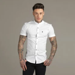 Father Sons Super Slim Stretch Classic Sand Grandad Collar Short Sleeve – FS290 (LAST CHANCE)