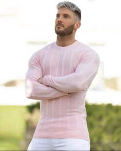 Father Sons Classic Long Sleeve Baby Pink Knitted Wide Rib Crew With Silver Emblem – FSH736