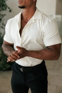 FS Hawaiian Boxy Stretch Cream Short Sleeve With Revere Collar – FS1094