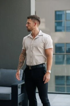 FS Hawaiian Boxy Stretch Beige Short Sleeve With Revere Collar – FS1096