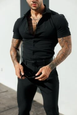 Father Sons Super Slim Stretch Black Denim Short Sleeve With Horizontal Seam And Pocket- FS954
