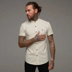 Father Sons Super Slim Stretch Classic Sand Grandad Collar Short Sleeve – FS290 (LAST CHANCE)