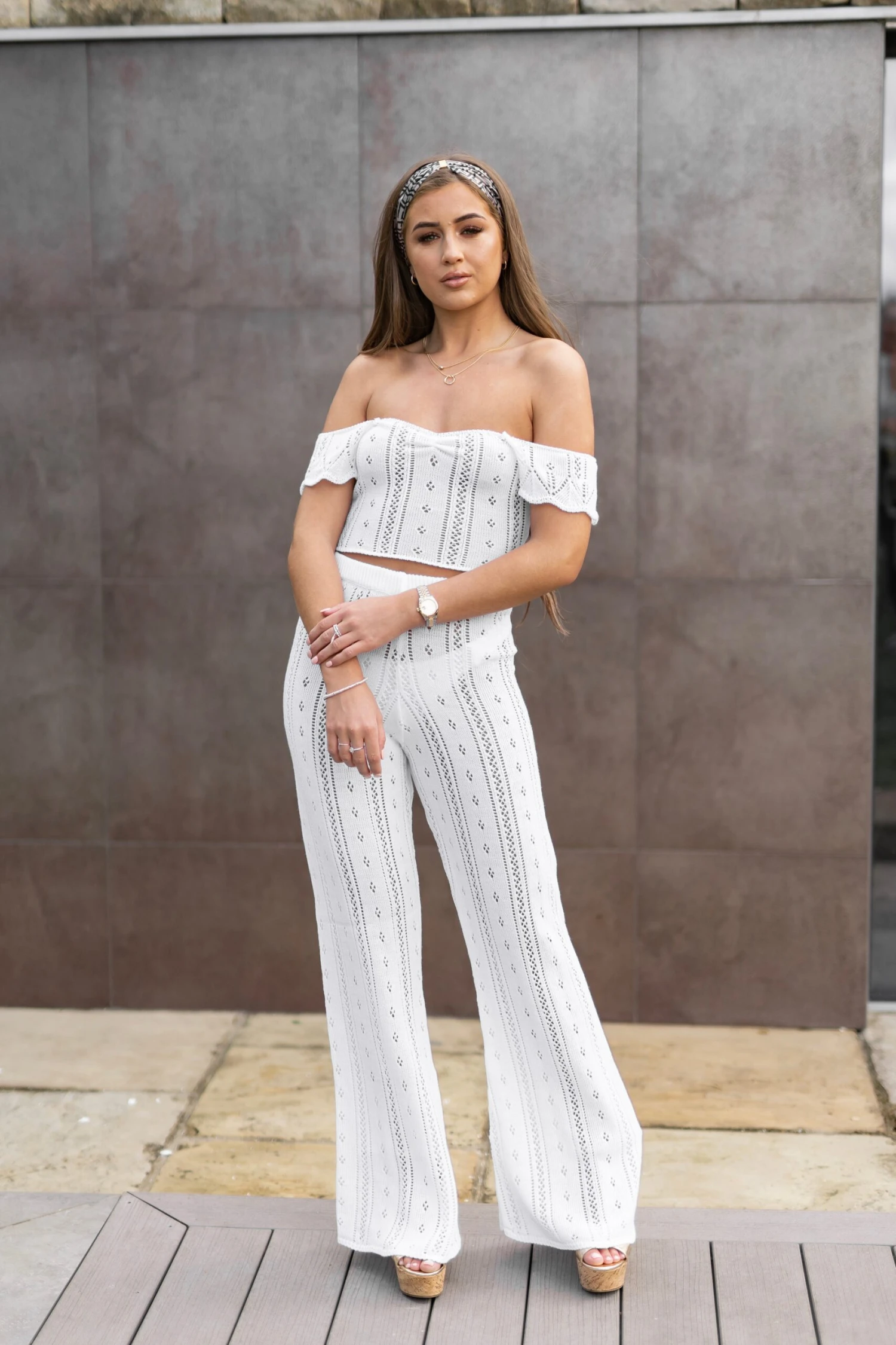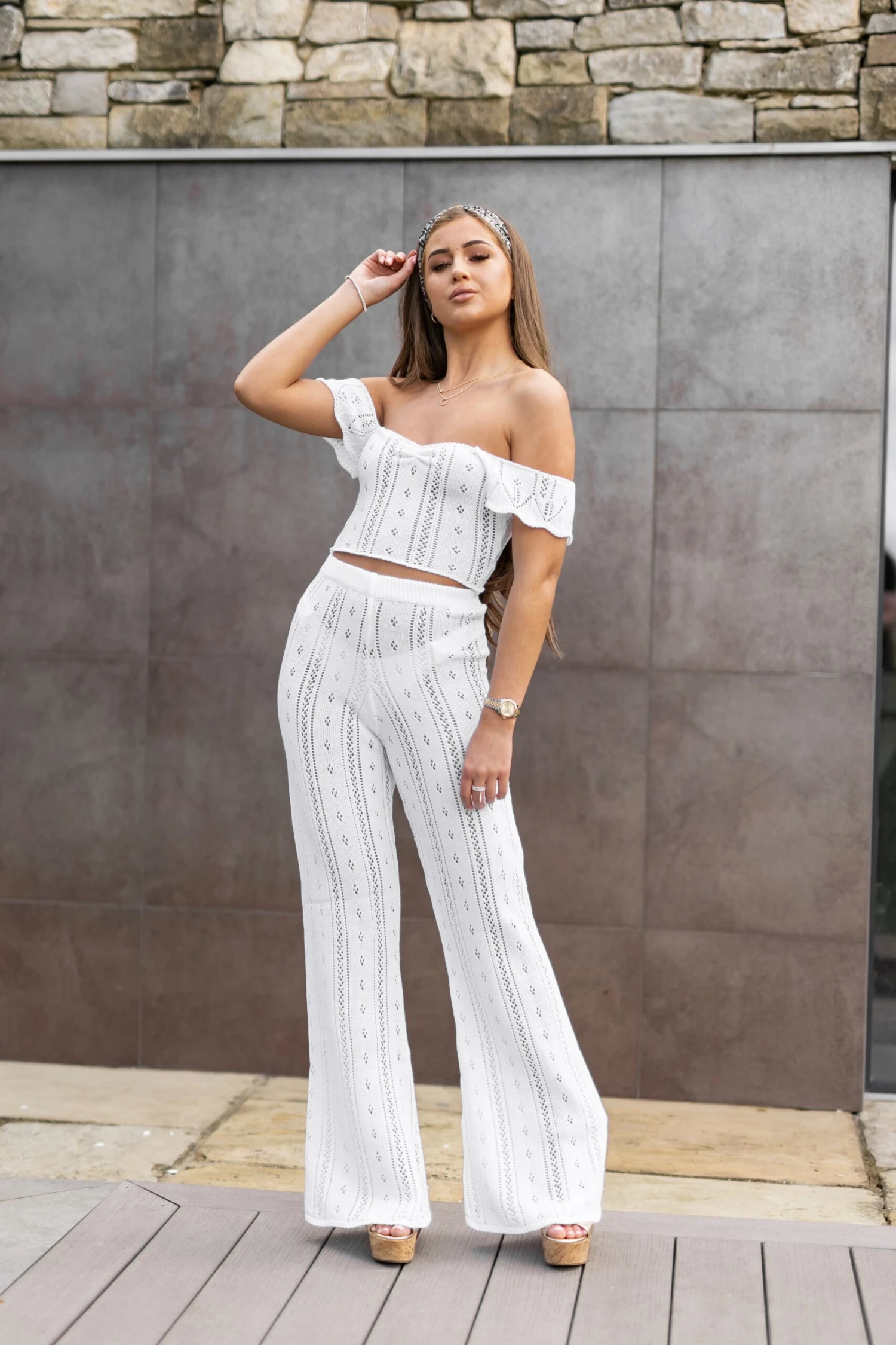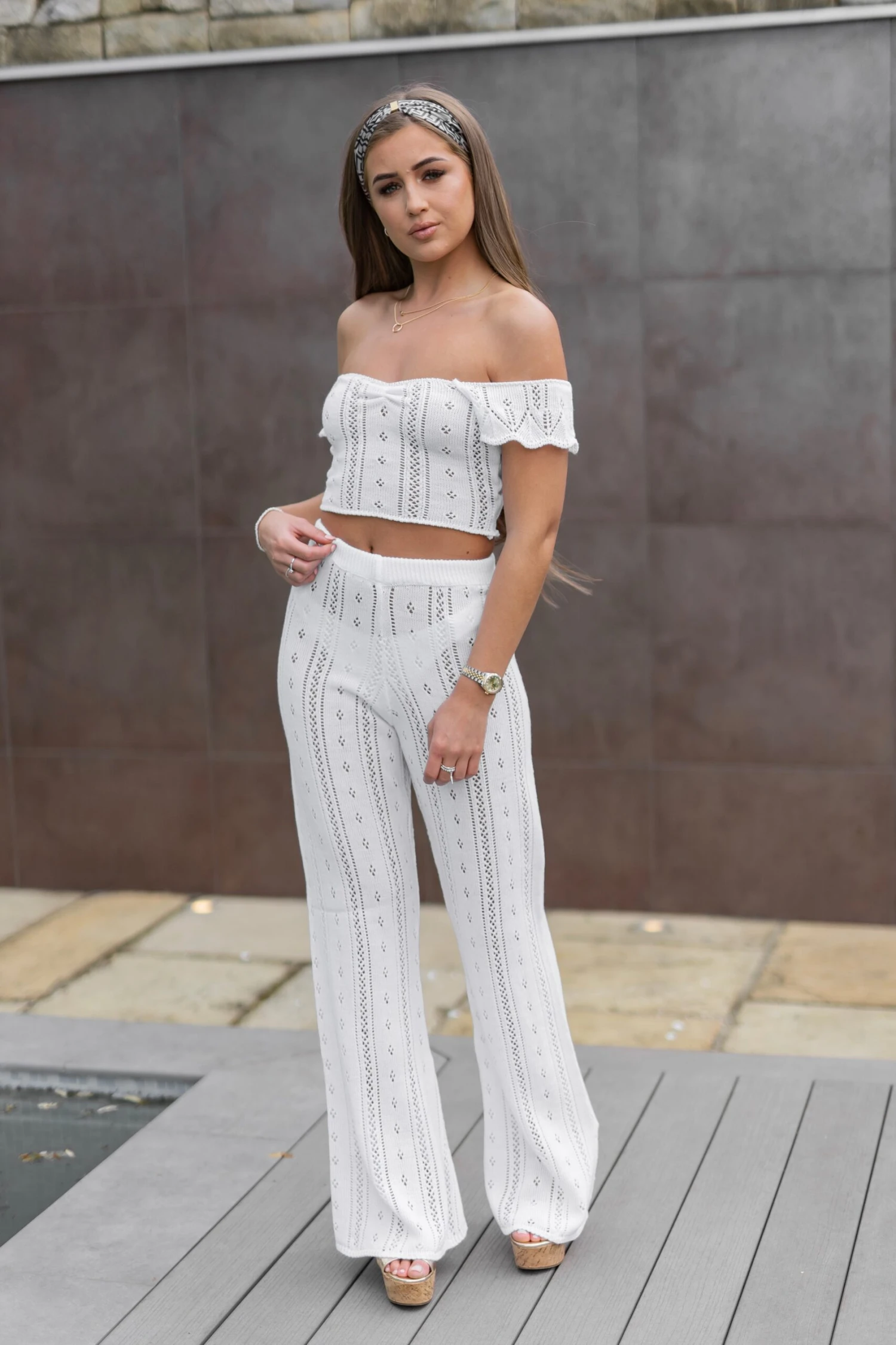 The ultimate poolside co-ord head turner this season goes to the ‘AYLA’ co-ord. Made from a soft crochet knit which compliments the female form perfectly. The trousers are a high waisted fit for ulimate comfort whilst remaining on trend. It is the perfect pool party or evening attire. It airs a bohemian twist yet ooches elegance at the same time. The high waisted trouser can be worn as a co-ord with the Ayla crop, or pair with swimwear or a tucked in vest top.