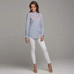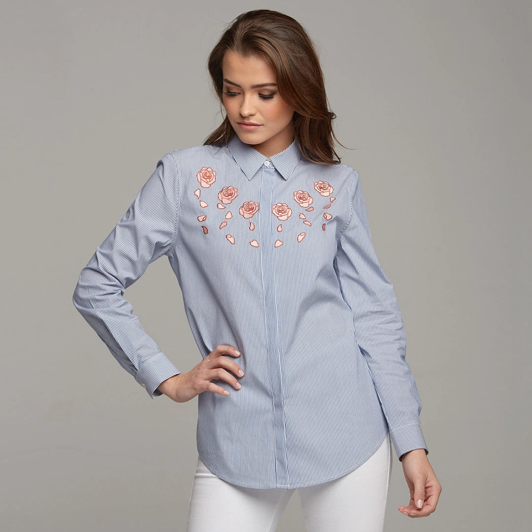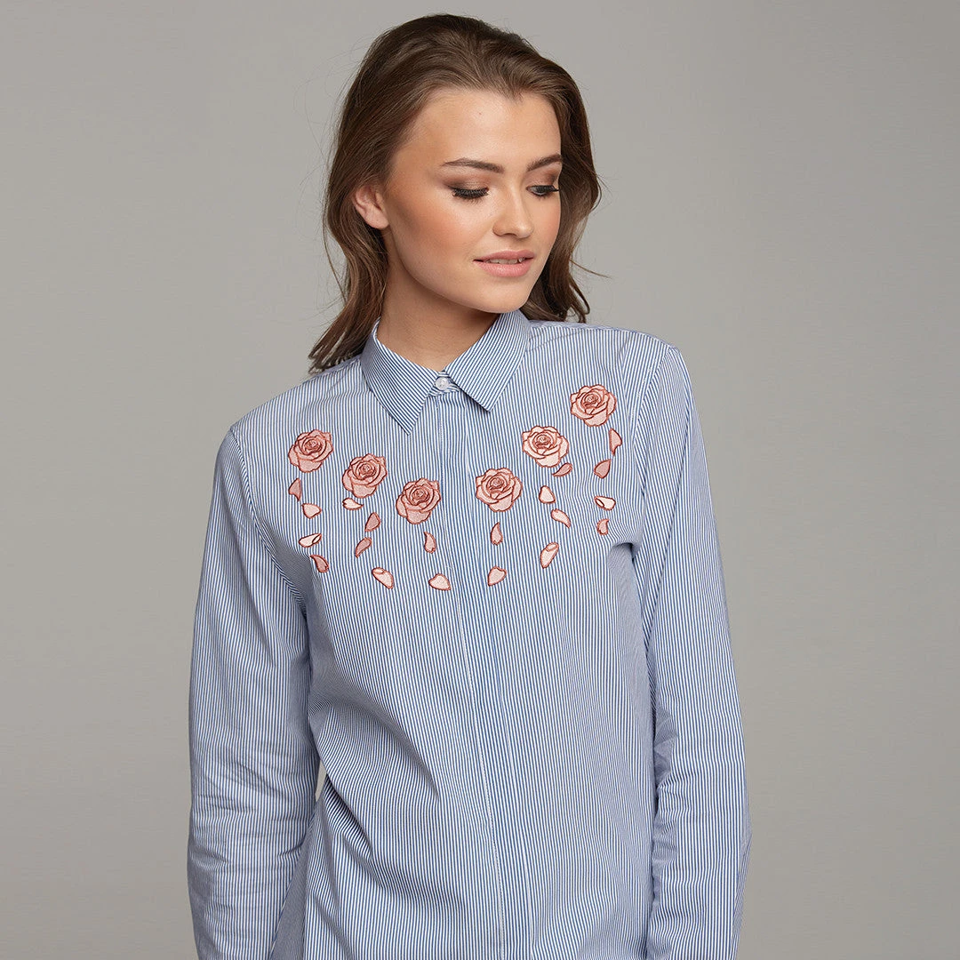 The BELLA shirt is every girls wardrobe neccessity!  It’s an ultra stylish take on a classic with its rose embroidery detail, it screams elegance but chic at the same time! This design is timeless! The artwork was put together and designed by the designer herself so it really is one of a kind with only 200 being made across all sizes. Featuring a concealed placket front to really give the shirt a clean and finished look. Pair with jeans or mix it up by tucking into a mini skirt. This shirt really does steal the show!
