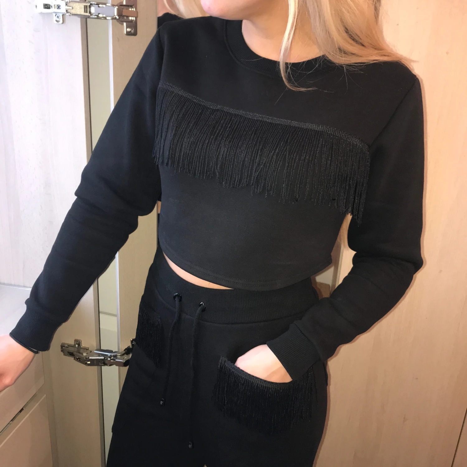 Loungewear never looked so stylish! Go lounge about in our new fringing detailed tracksuit crop! The Caggie fringed lounge crop is every capsule wardrobes dream…. It’s casual meets stylish – wear round the house or out and about, this gorgeous two piece is not to go unmissed!