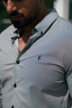 Father Sons Classic Stretch LS Black Optical Spot Print Button Down Collar – FS1107