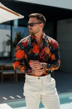 Father Sons Classic Stretch LS Black / Orange Oriental Print Button Down Collar – FS1102