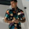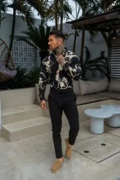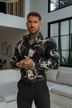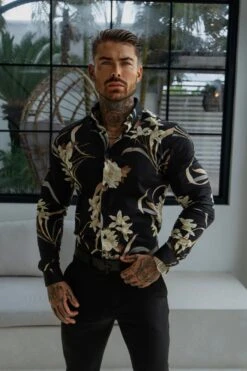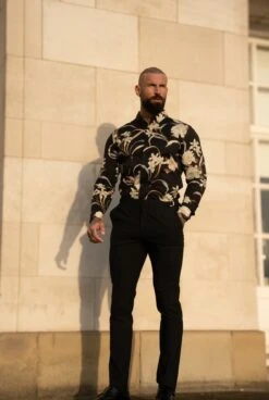 Father Sons Classic Stretch LS Black Oriental Print Button Down Collar – FS1156