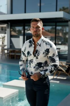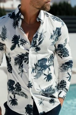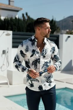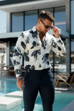 Father Sons Classic Stretch LS White / Ink Print Button Down Collar – FS1100