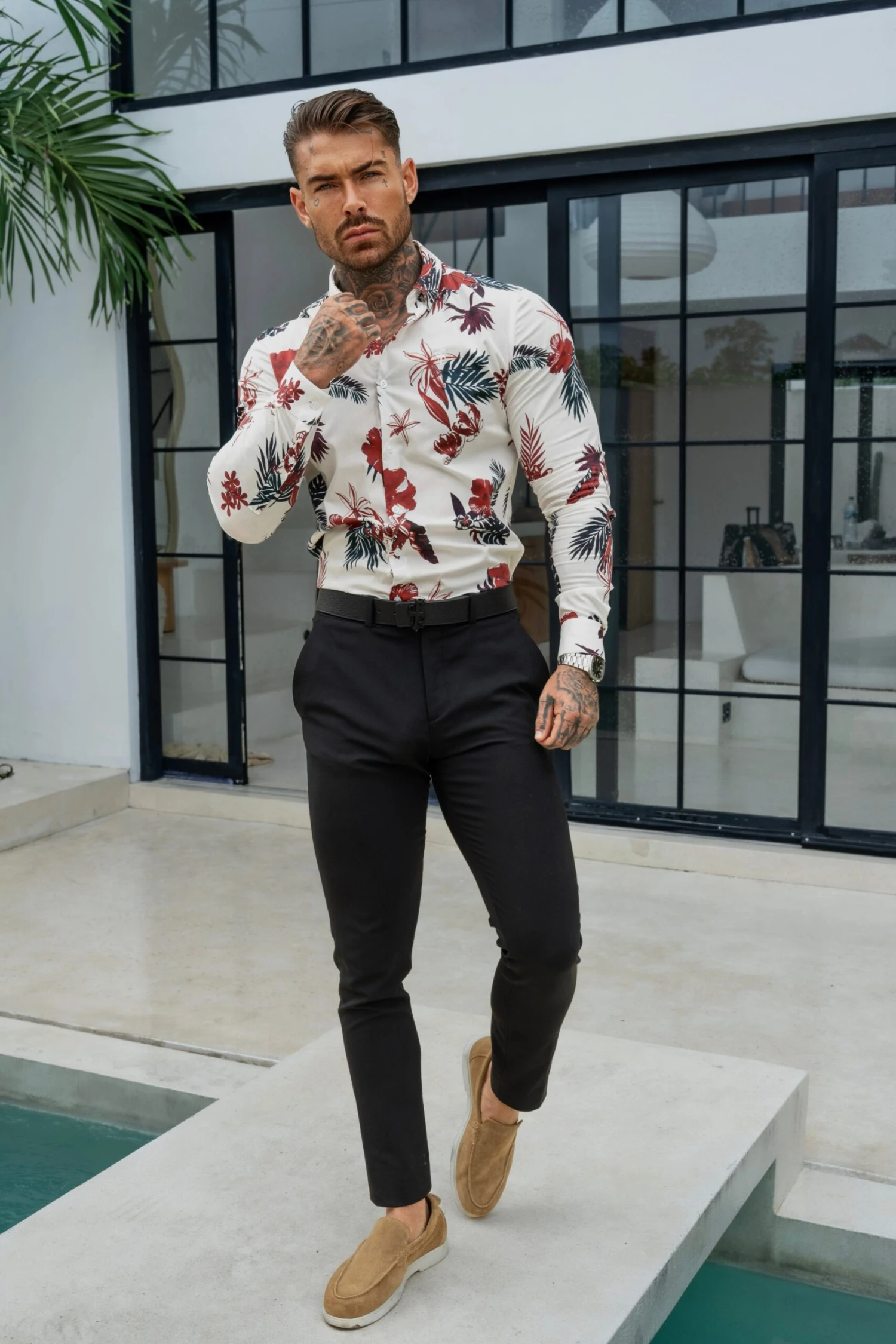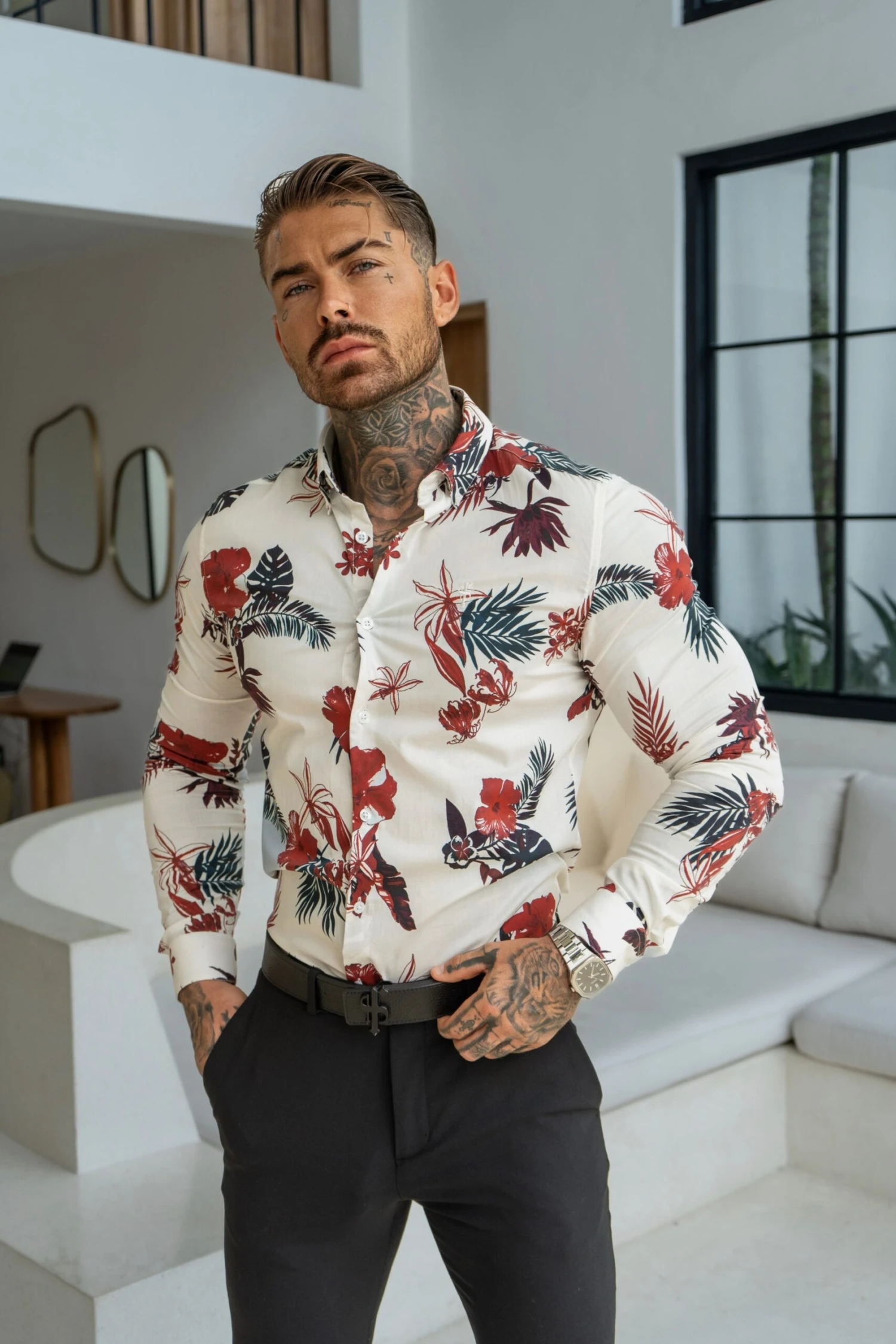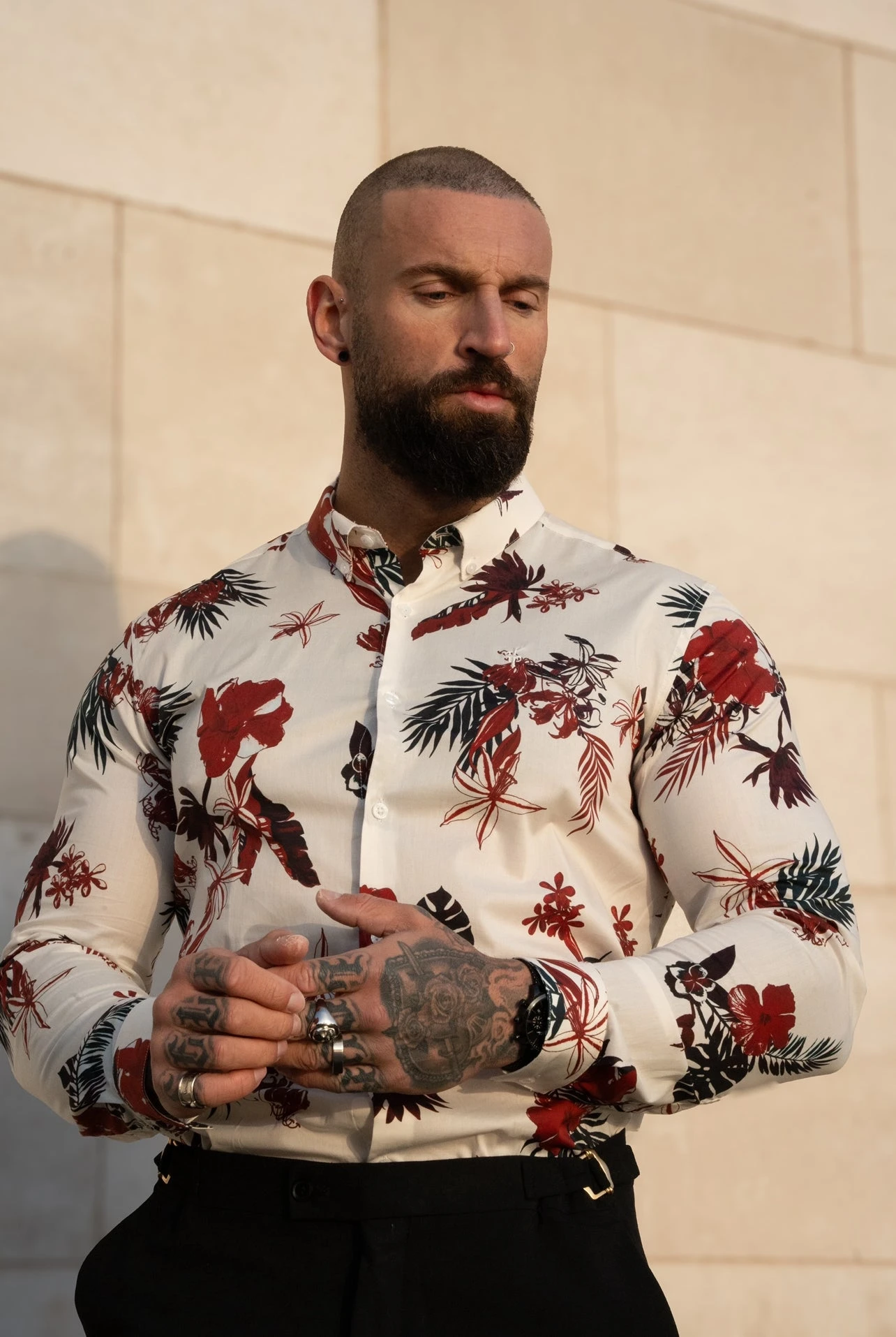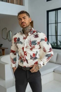 Father Sons Classic Stretch LS White / Rust Floral Print Button Down Collar – FS1155
