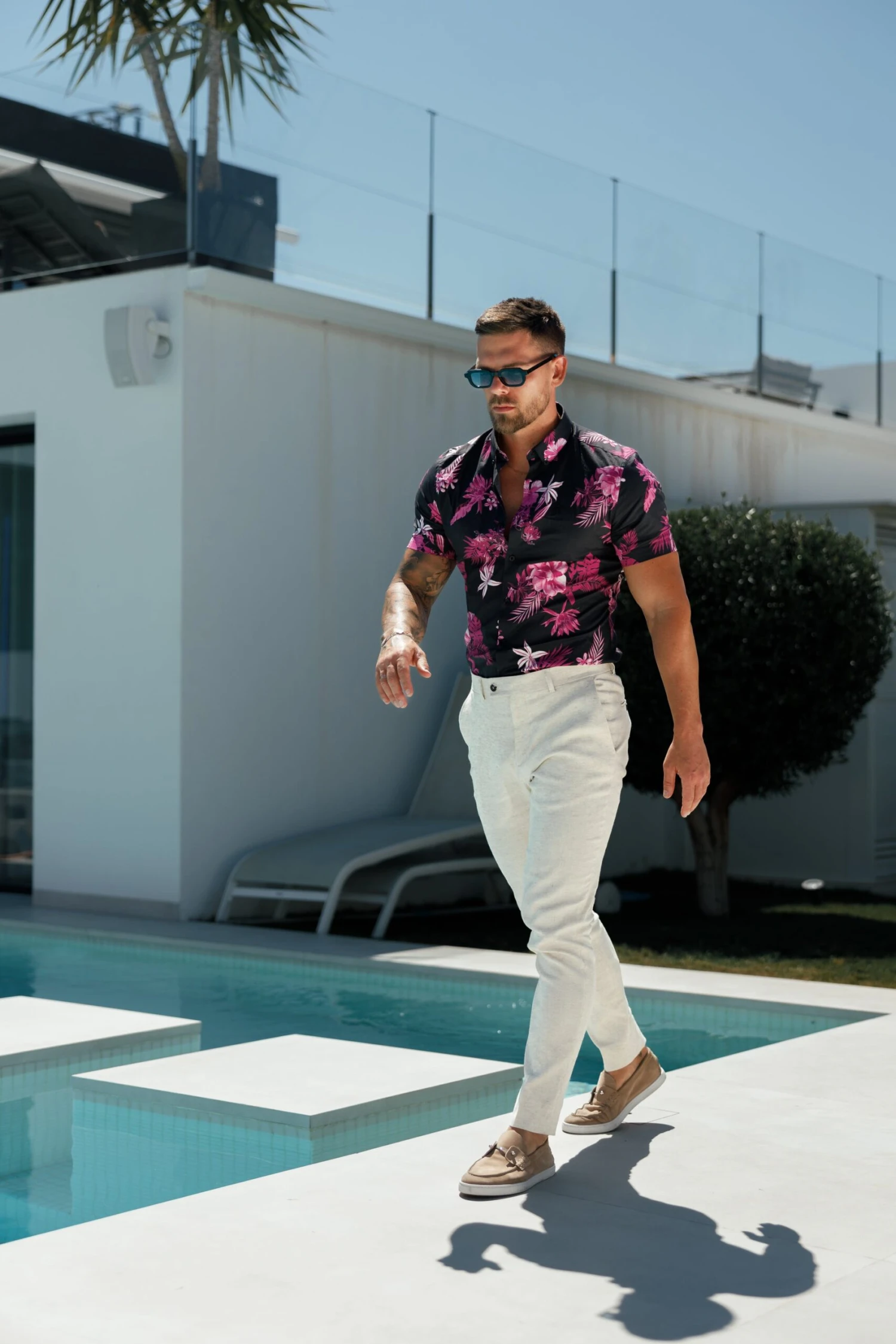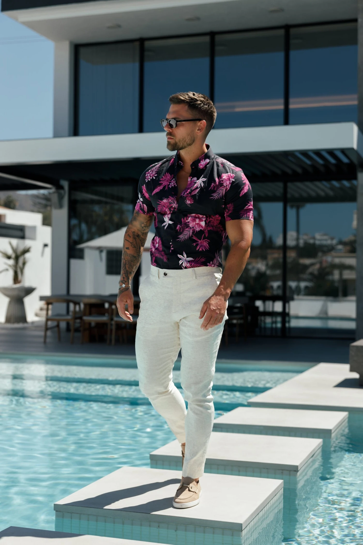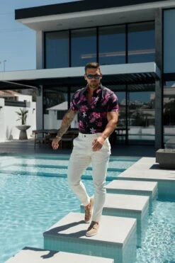 Father Sons Classic Stretch SS Black / Bright Pink Floral Print Button Down Collar – FS1103