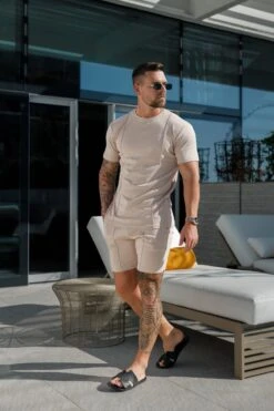 Father Sons Beige Elasticated Drawstring Pintuck Shorts – FSH1058
