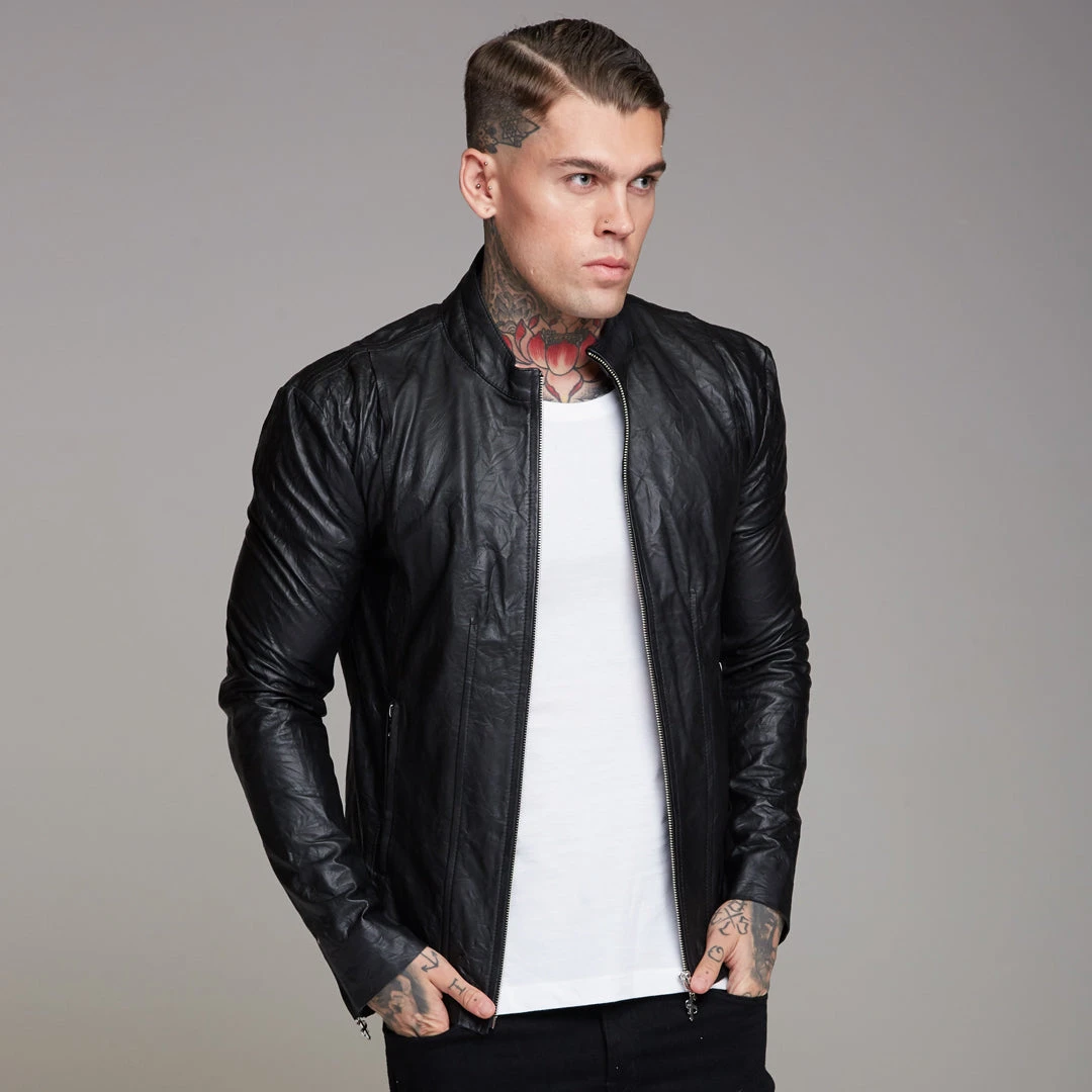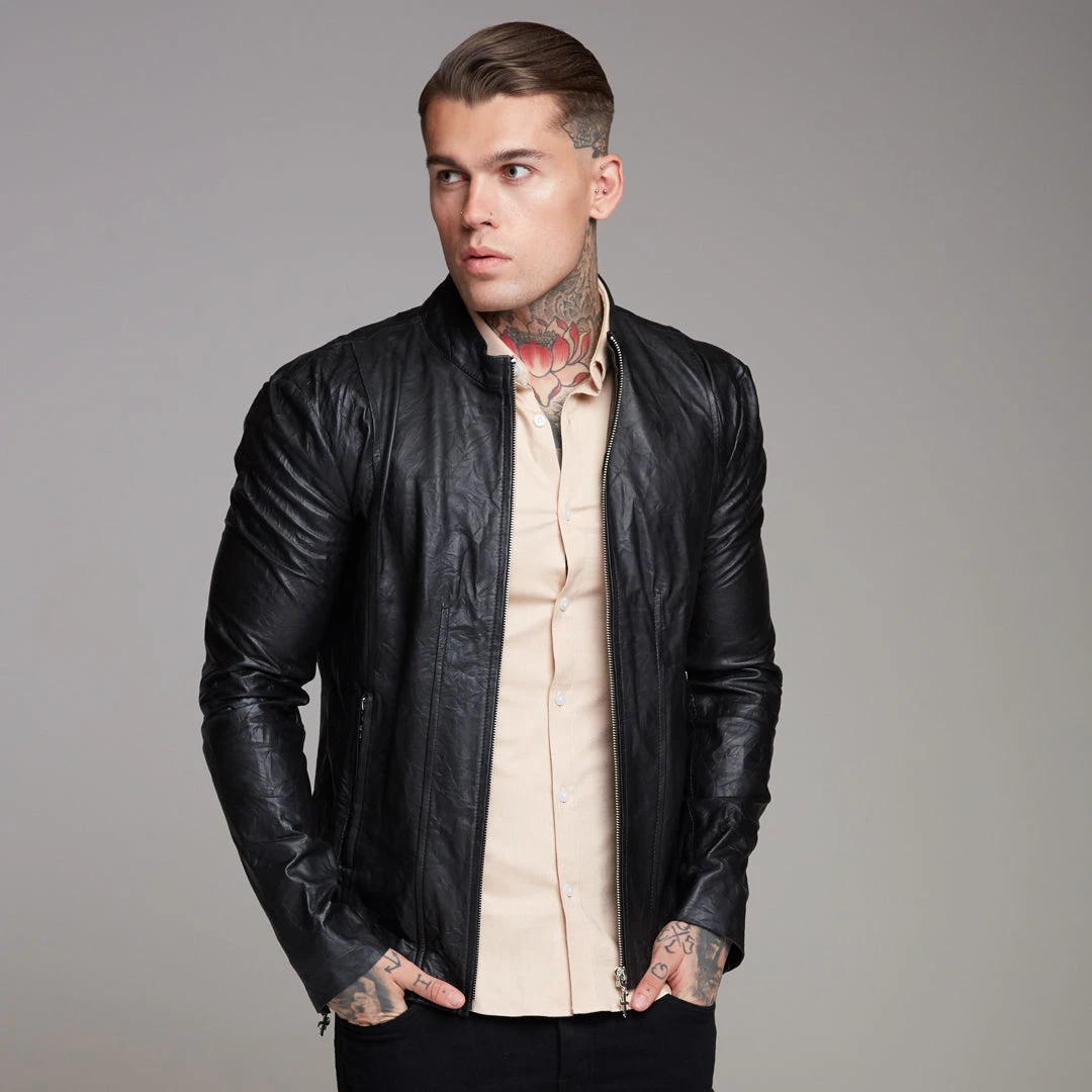 Father Sons Black Lambs Leather Jacket – FSH163
