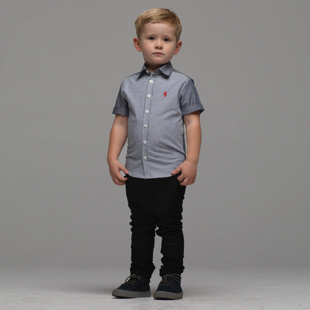 Father Sons Boys Denim Blue & White Stripe Short Sleeve – FSB012