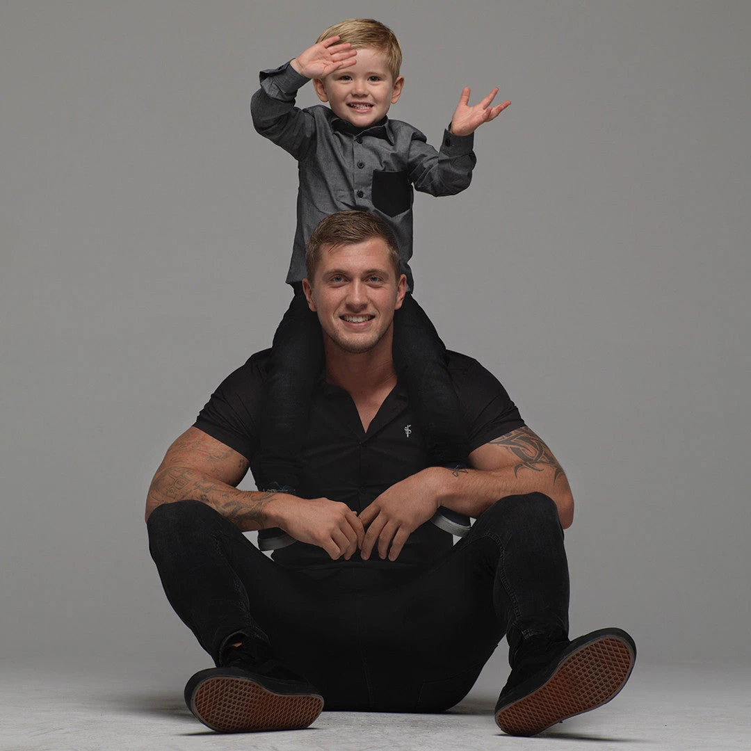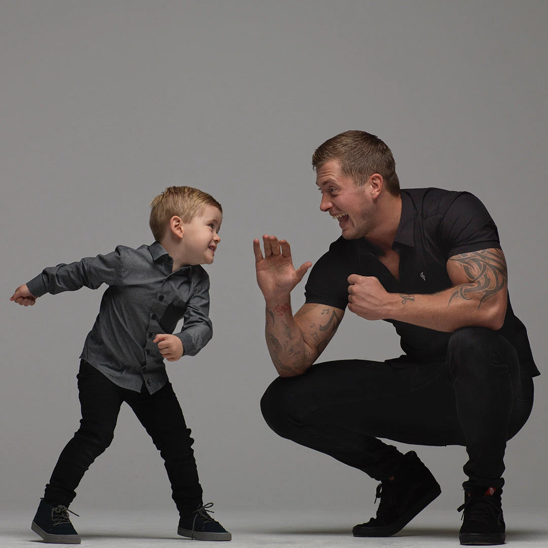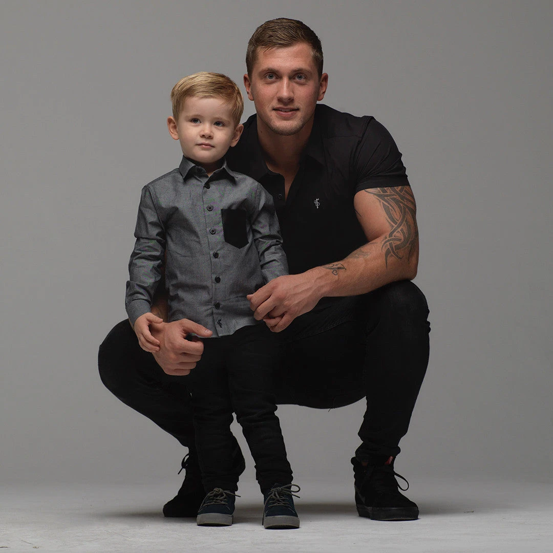 Father Sons Super Slim Stretch Classic Black Short Sleeve – FS127