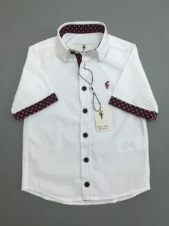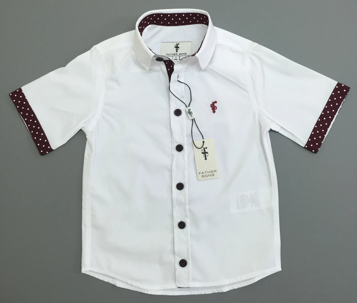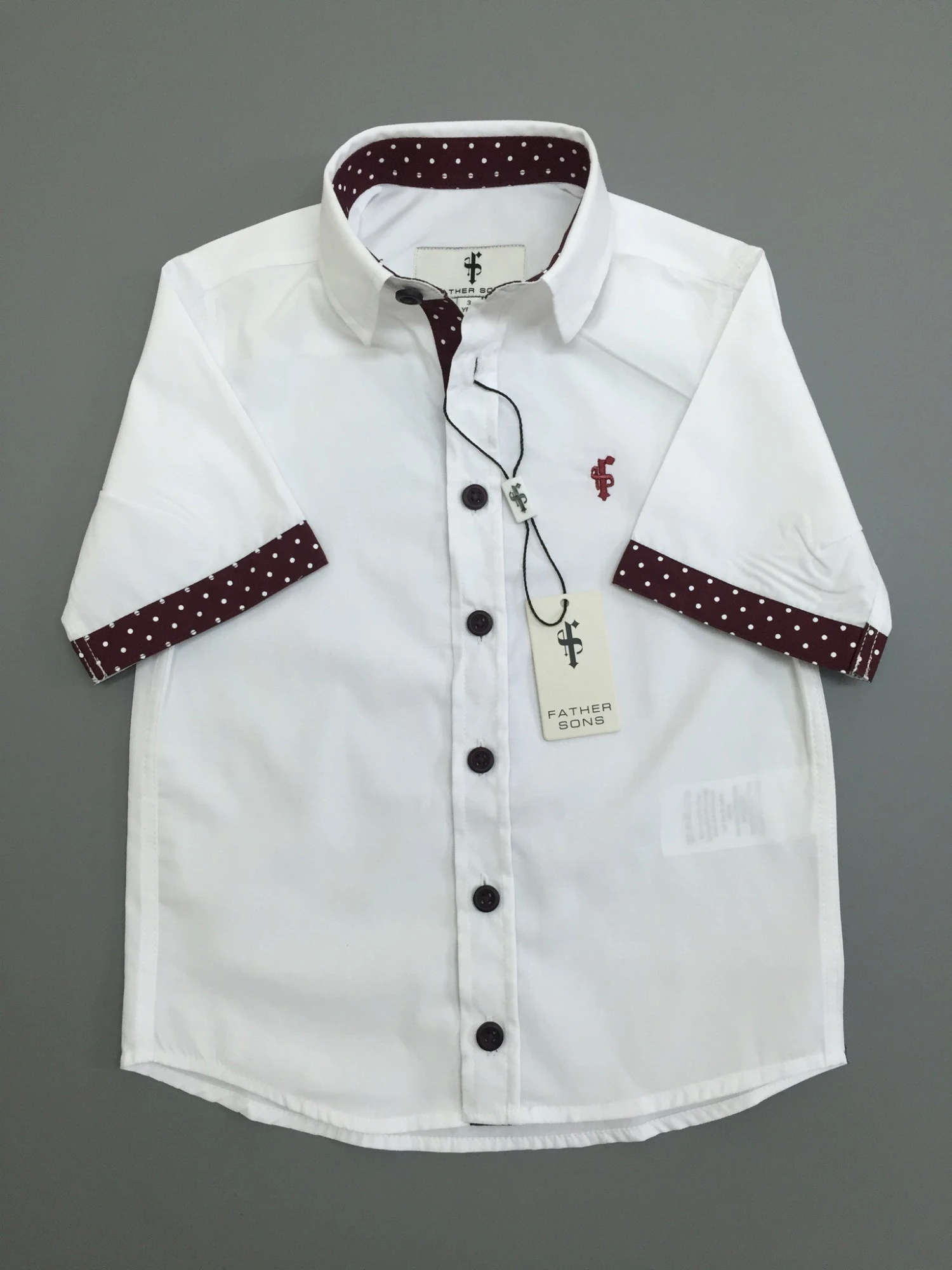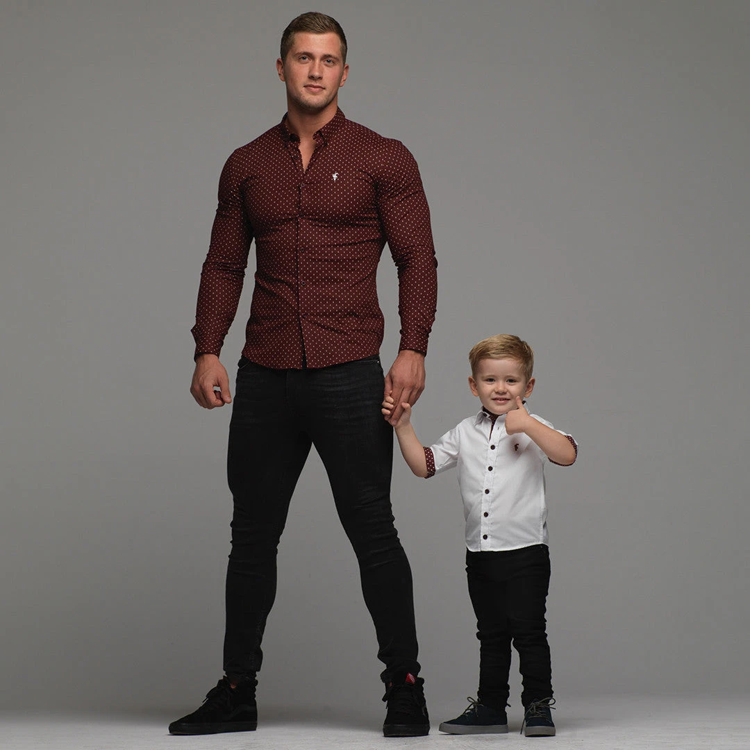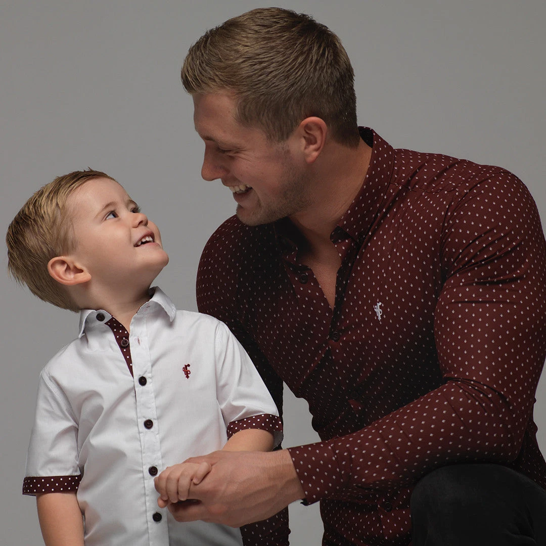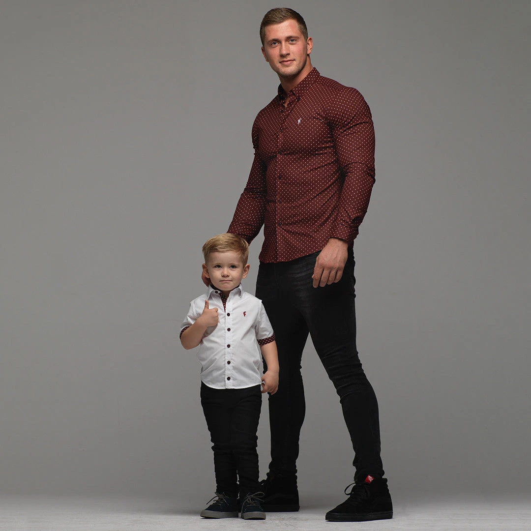 Father Sons Boys White & Burgundy Polkadot Contrast – FSB010
