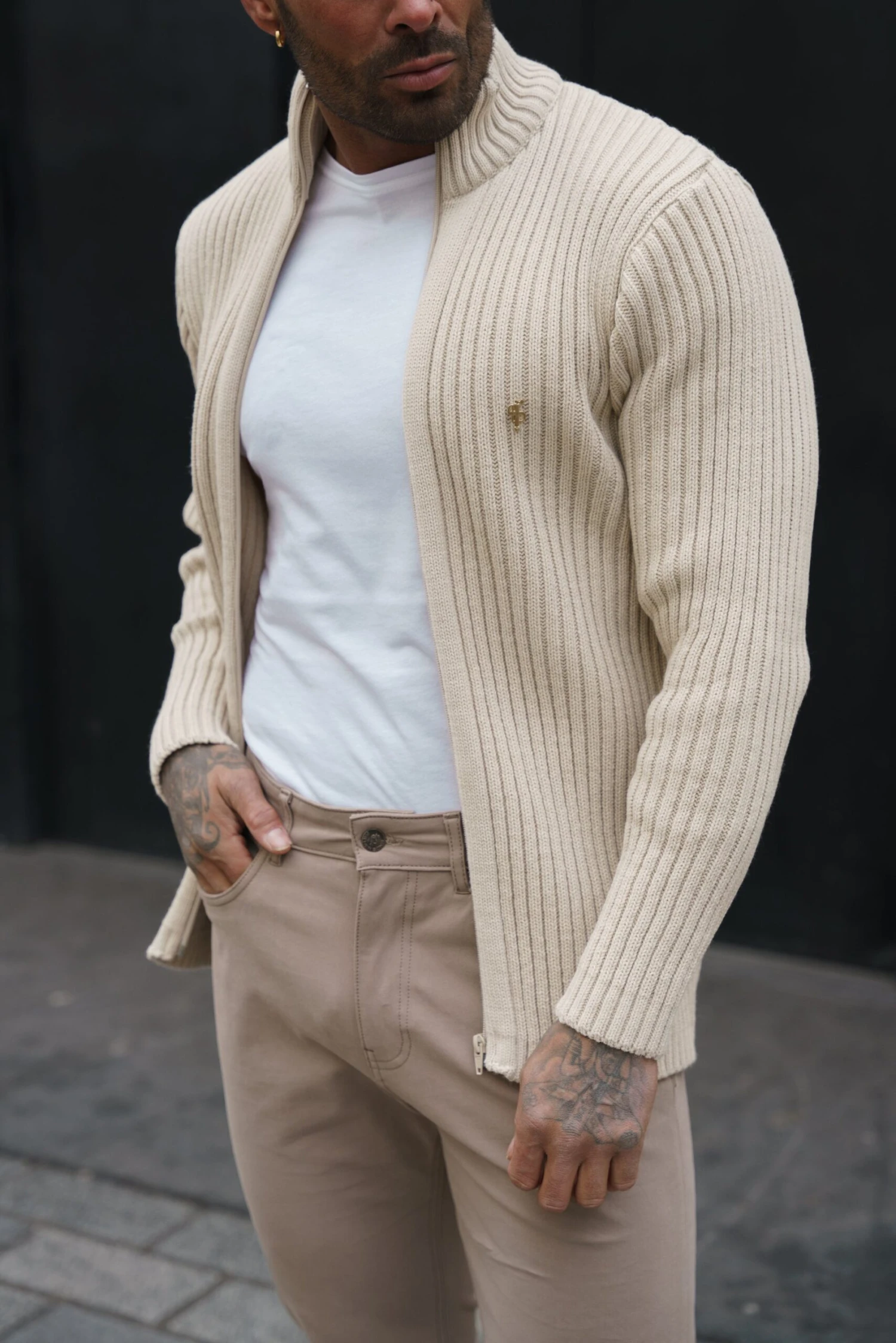 Father Sons Chunky Beige Ribbed Cardigan – FSJ069