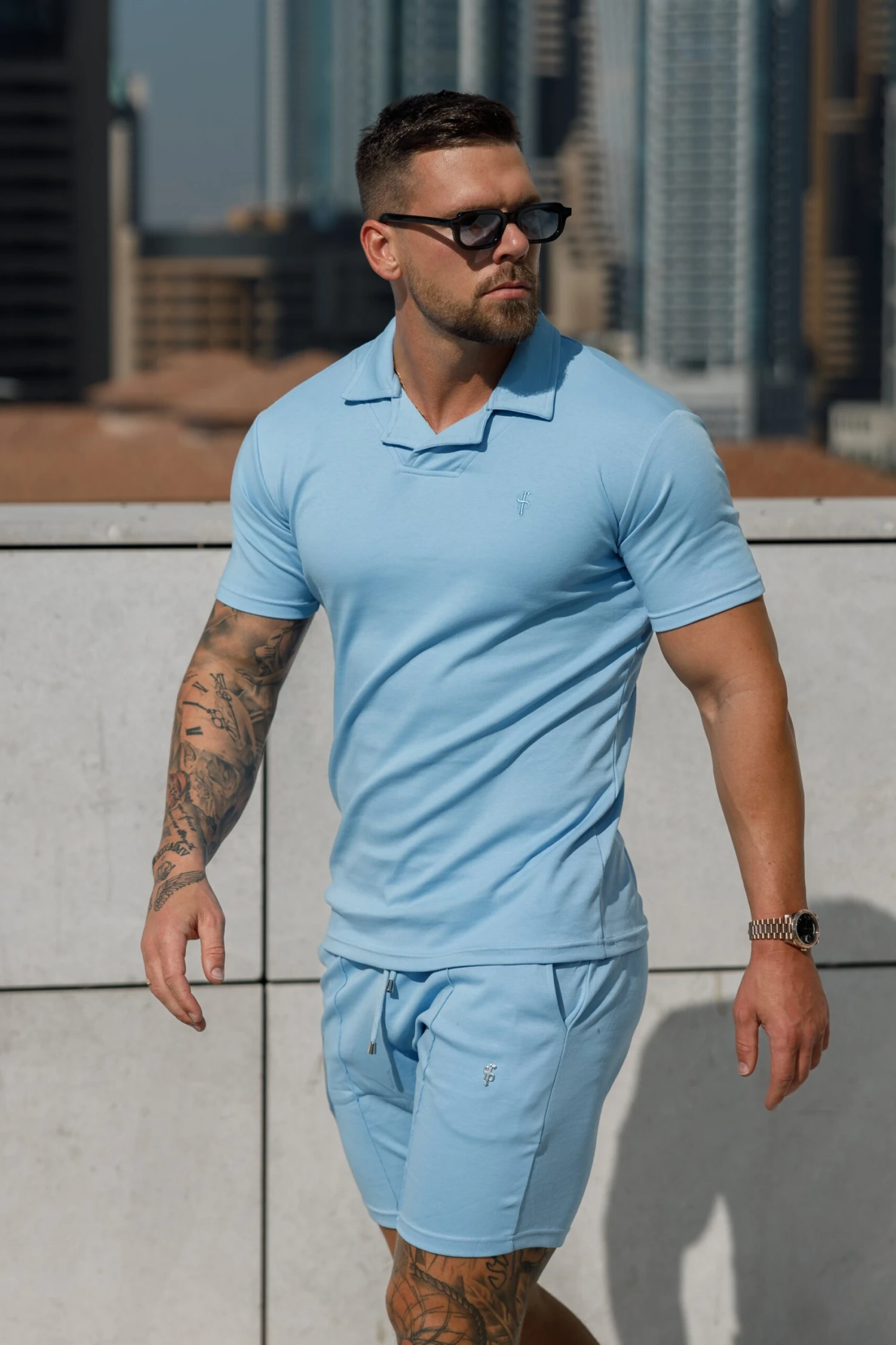 Father Sons Classic Baby Blue Polo Shirt With Revere Collar – FSH1064
