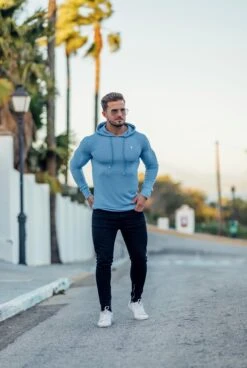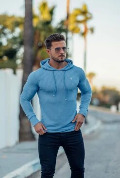 Father Sons Classic Baby Blue Ribbed Knit Hoodie Jumper With Silver Emblem – FSH595