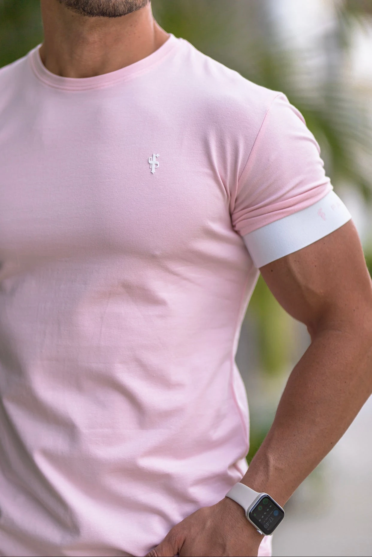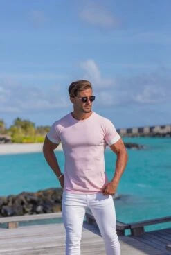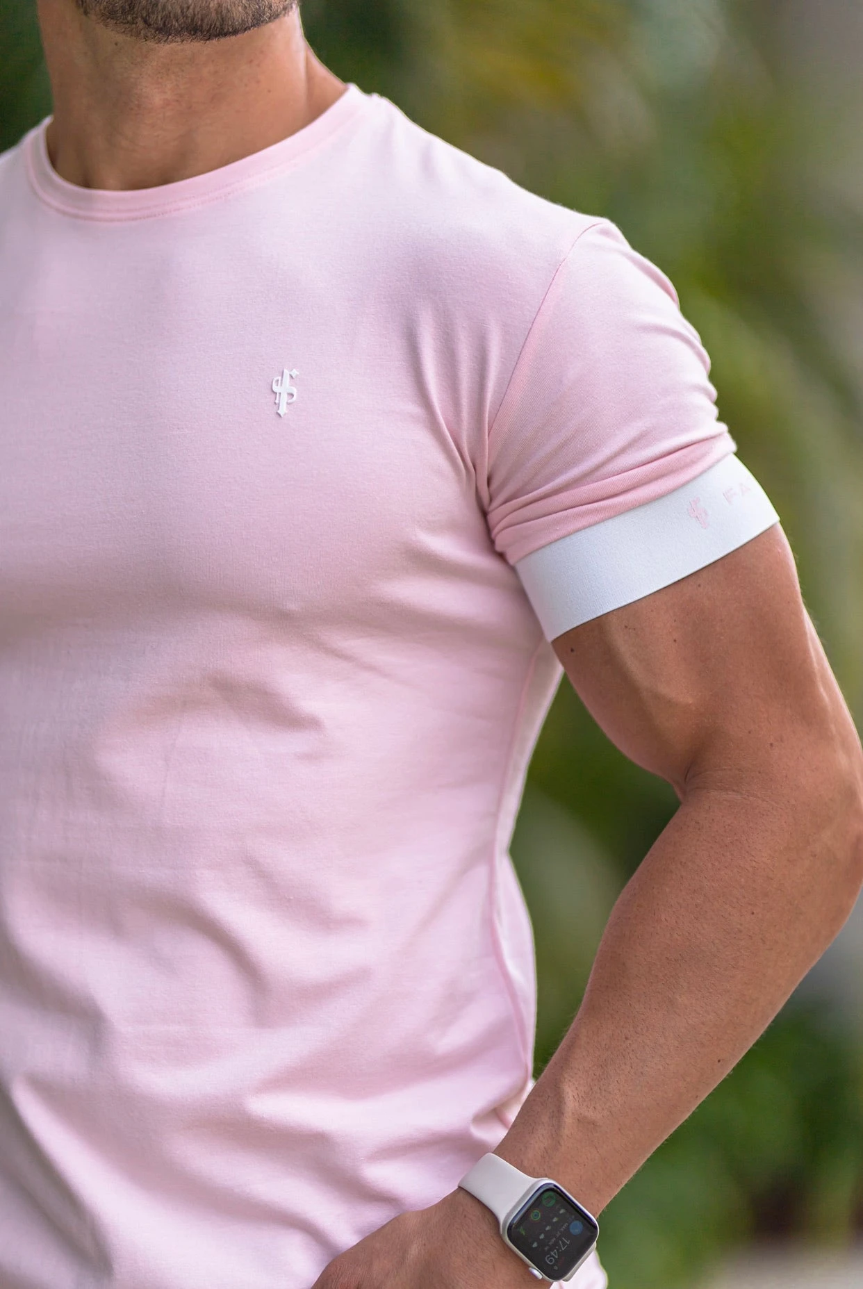 Father Sons Classic Baby Pink Crew T Shirt with FS Elastic Sleeve Branding – FSH639