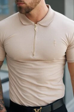 Father Sons Classic Beige and Gold Zipped Polo Shirt – FSH811