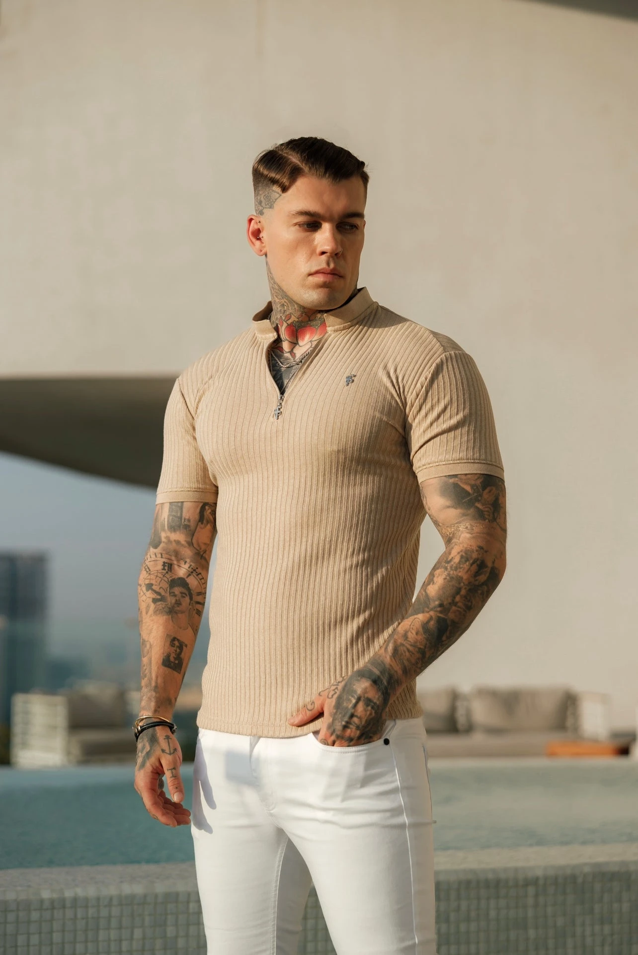 Father Sons Classic White / White Ribbed Silver Zip Grandad Collar Shirt Short Sleeve – FSH916