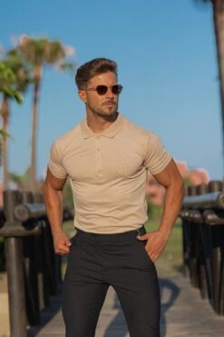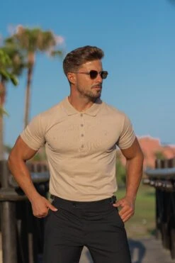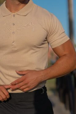Father Sons Classic Beige Polo Shirt with Tonal Buttons and Embroidery – FSH827