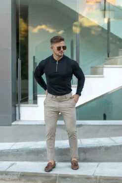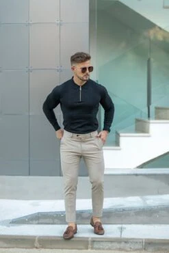 Father Sons Classic Black and Gold Zip Knitted Polo Shirt Long Sleeve – FSN126