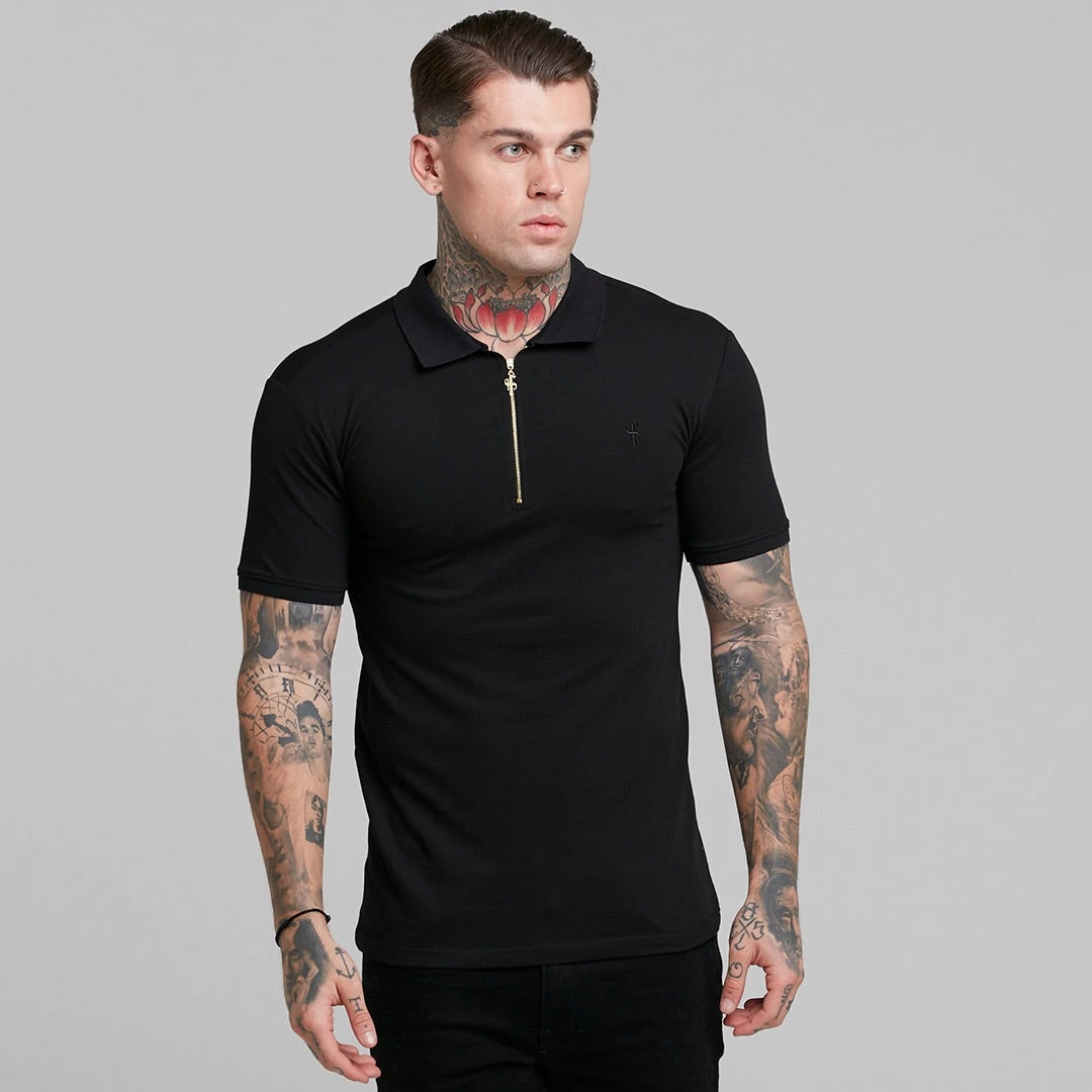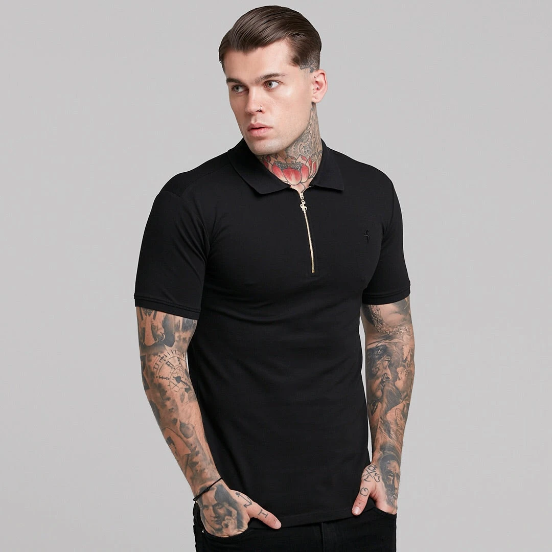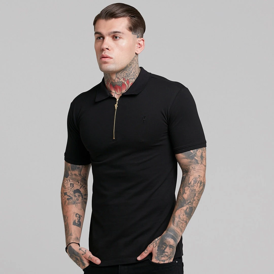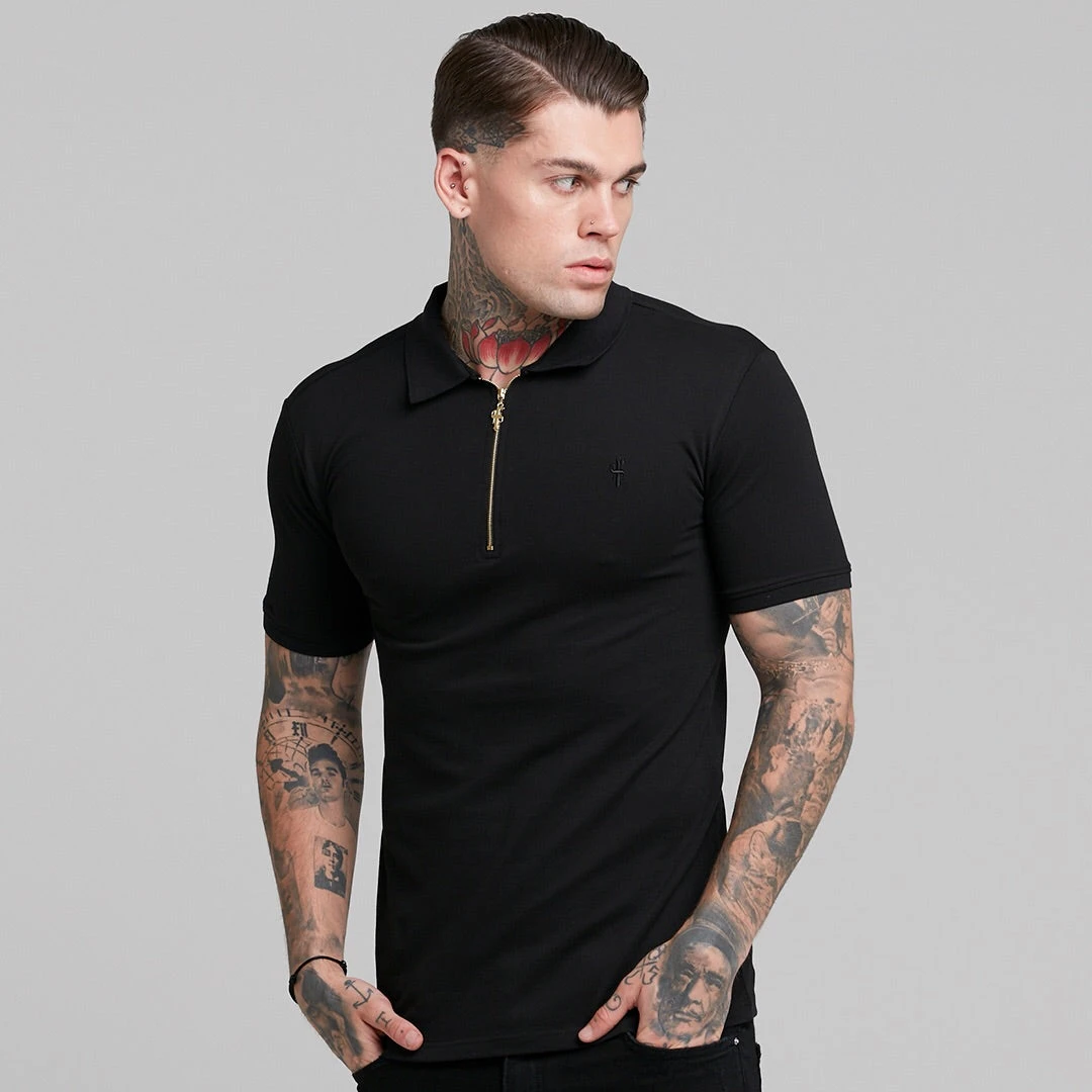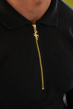 Father Sons Classic Black and Gold Zipped Polo Shirt – FSH239