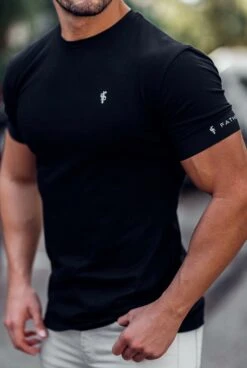 Father Sons Classic Black Crew T Shirt with FS Elastic Sleeve Branding – FSH558