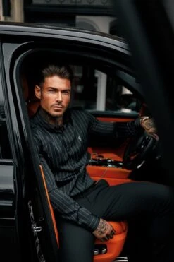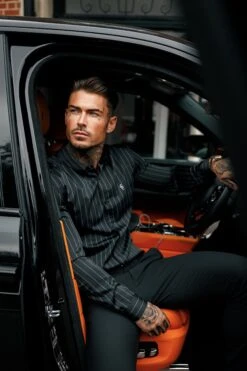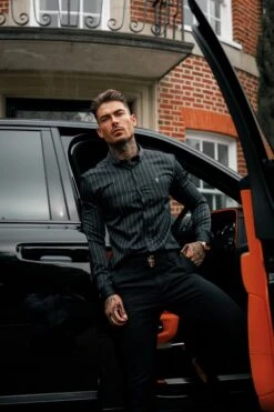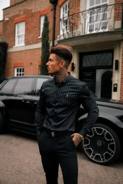 Father Sons Classic Black / Grey Woven Sateen Stripe Long Sleeve – FS993
