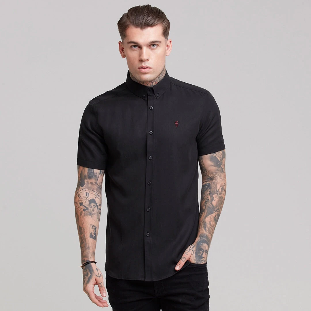 Father Sons Classic Black Lyocell Short Sleeve (Burgundy Emblem) – FS466