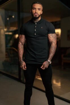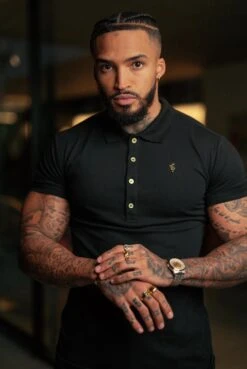Father Sons Classic Black Polo Shirt with Gold Metal Emblem Decal & Buttons – FSH458