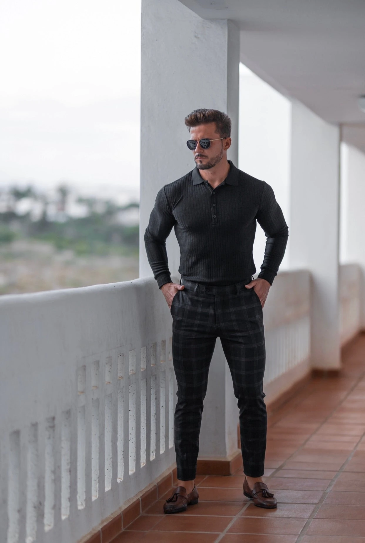 Father Sons Classic Black Ribbed Polo Shirt Long Sleeve – FSH582