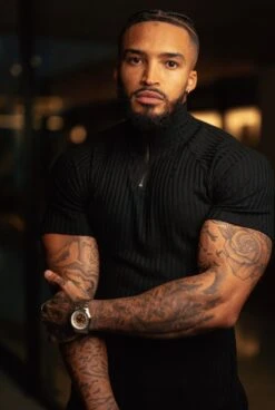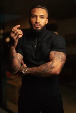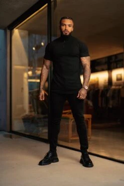 Father Sons Classic Black Ribbed Zip Funnel Neck Raglan Short Sleeve Crew – FSH729