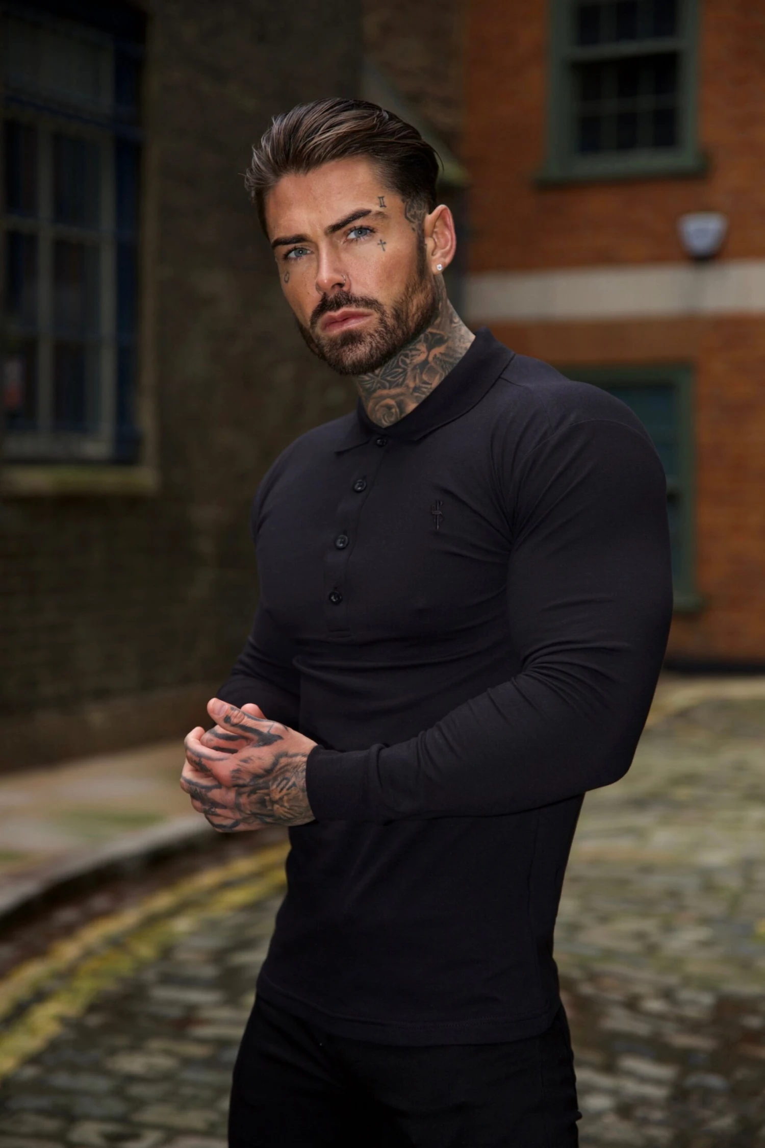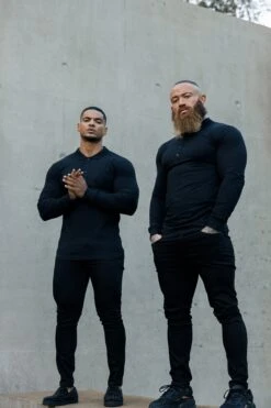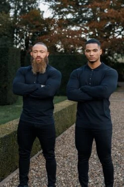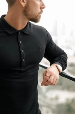 Father Sons Classic Black Tonal Polo Long Sleeve Shirt – FSH857