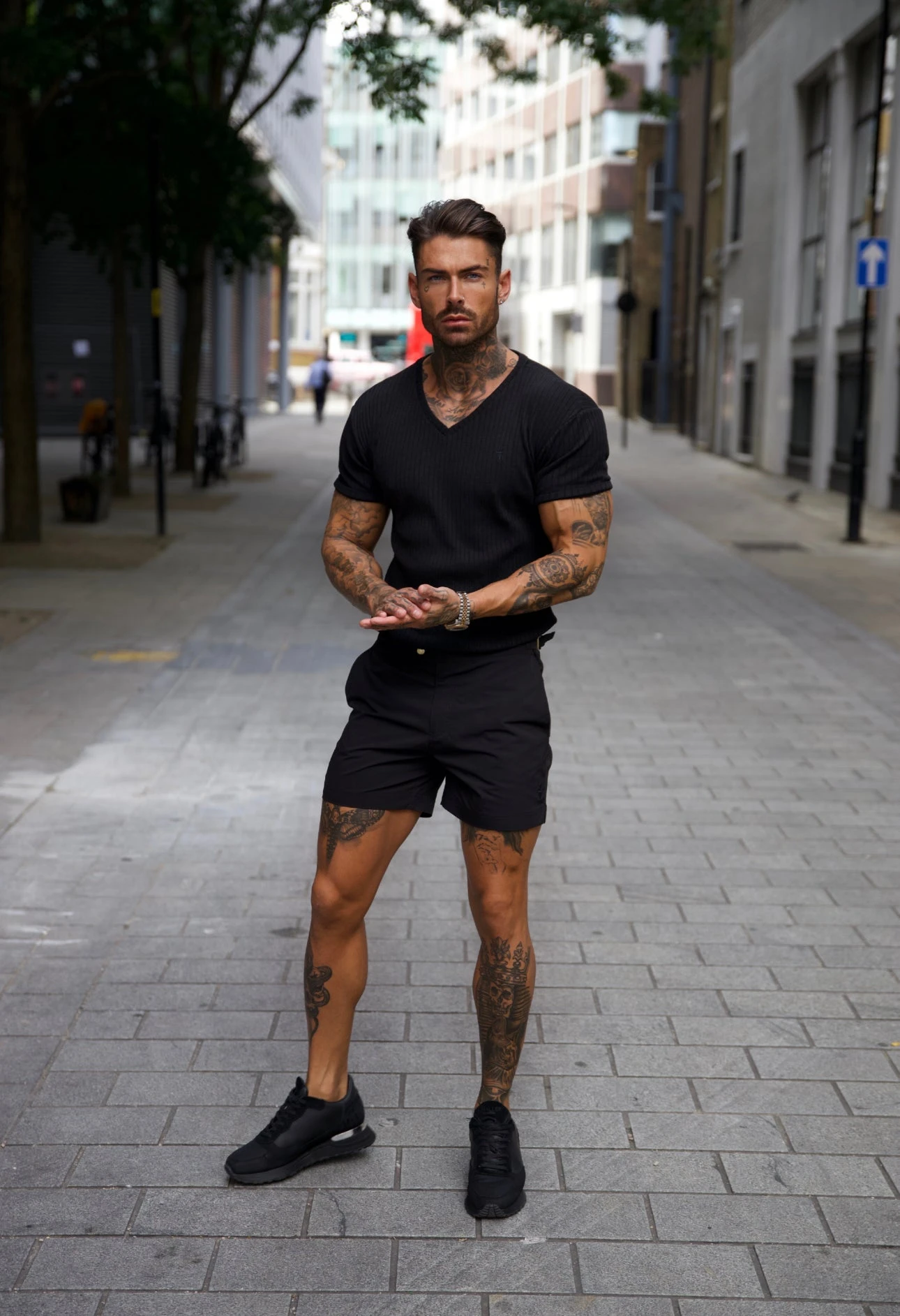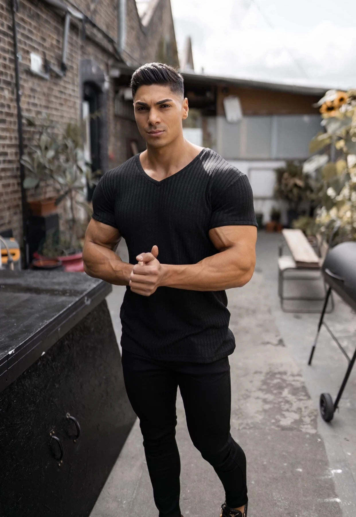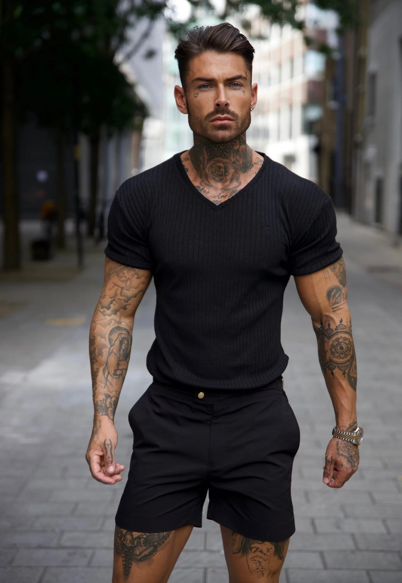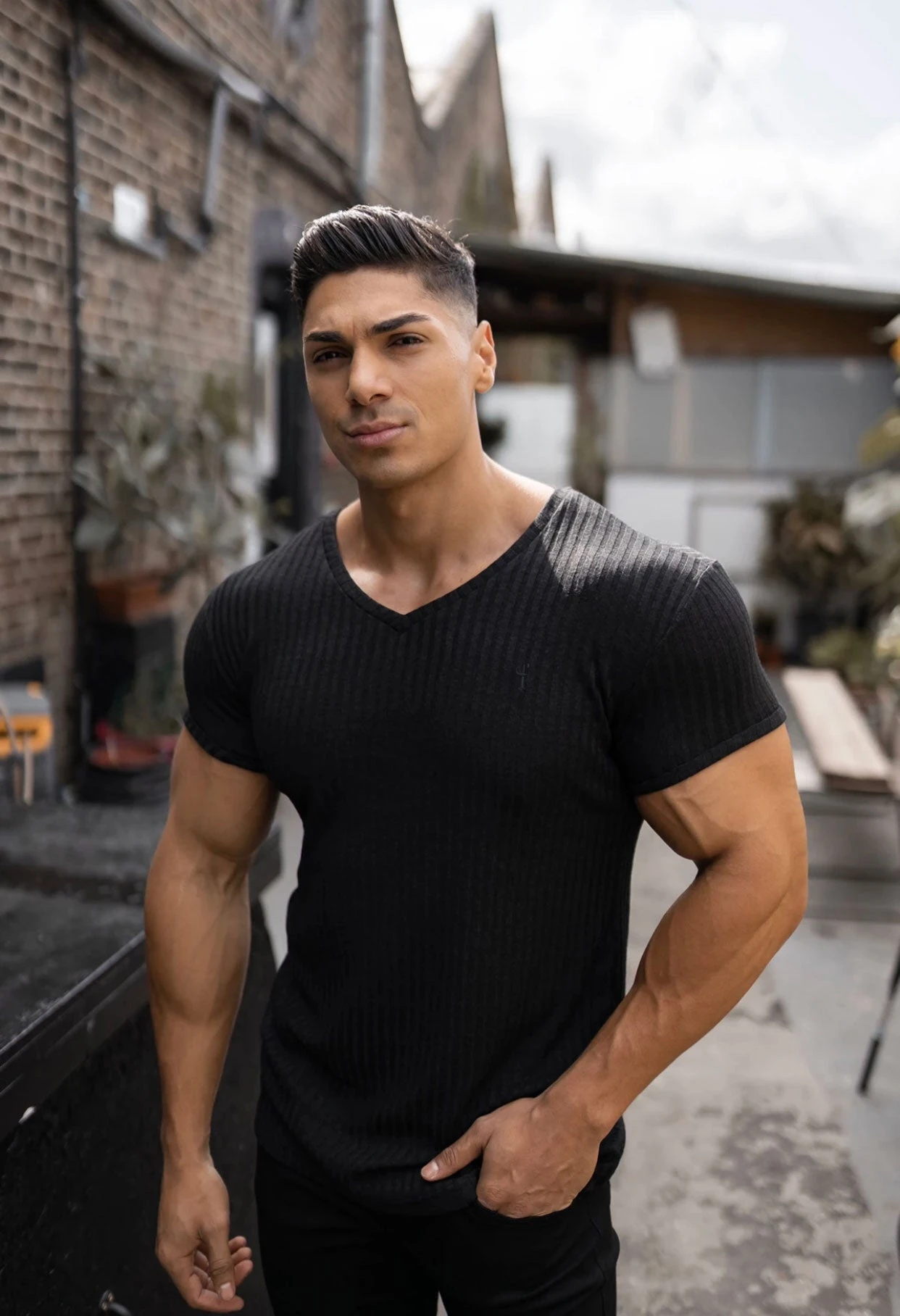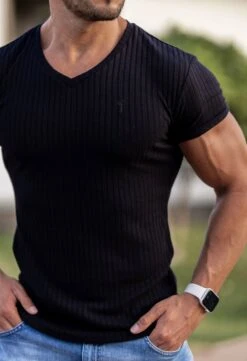 Father Sons Classic Black With Black Emblem Ribbed V Neck – FSH389