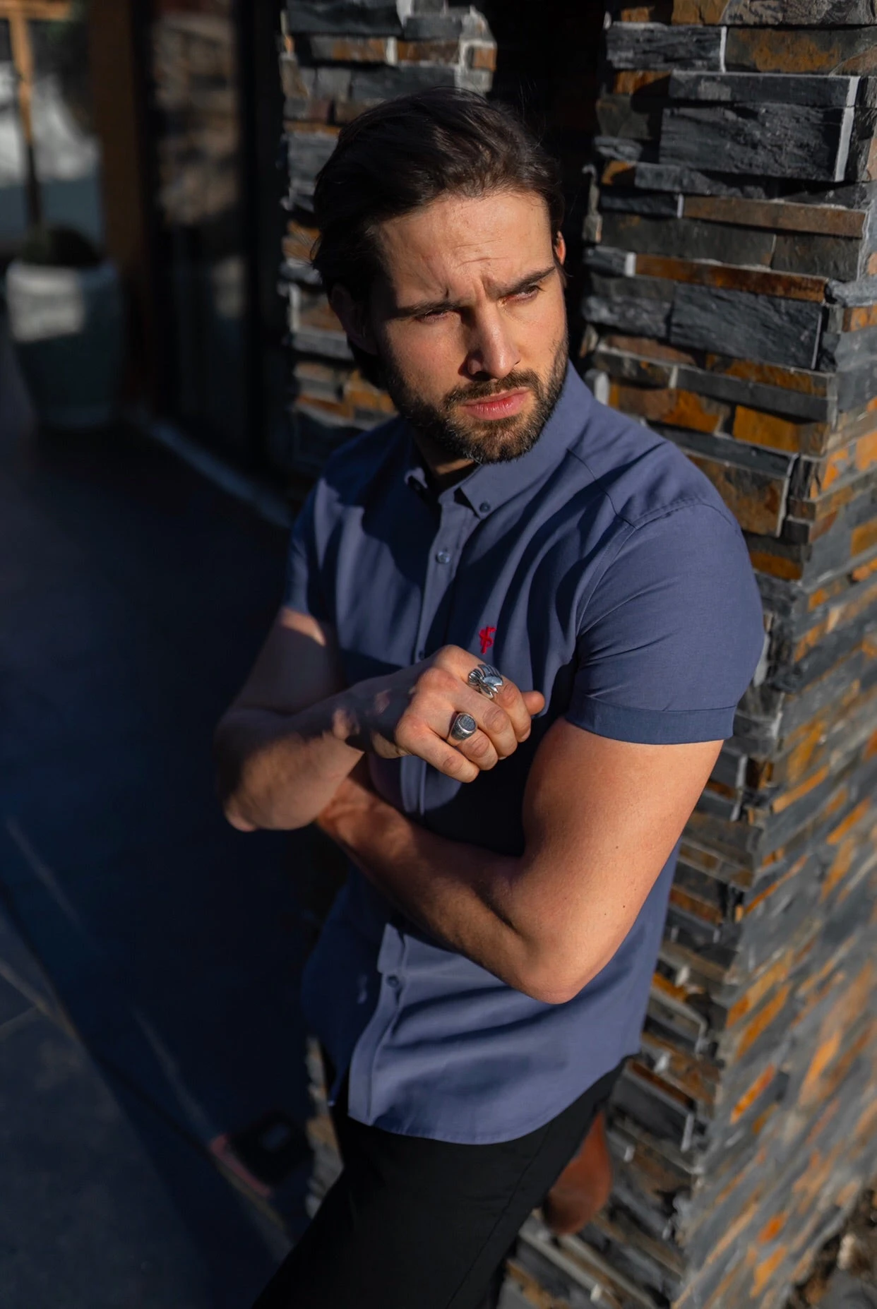 Father Sons Classic Blue Lyocell Short Sleeve (Red Emblem) – FS470