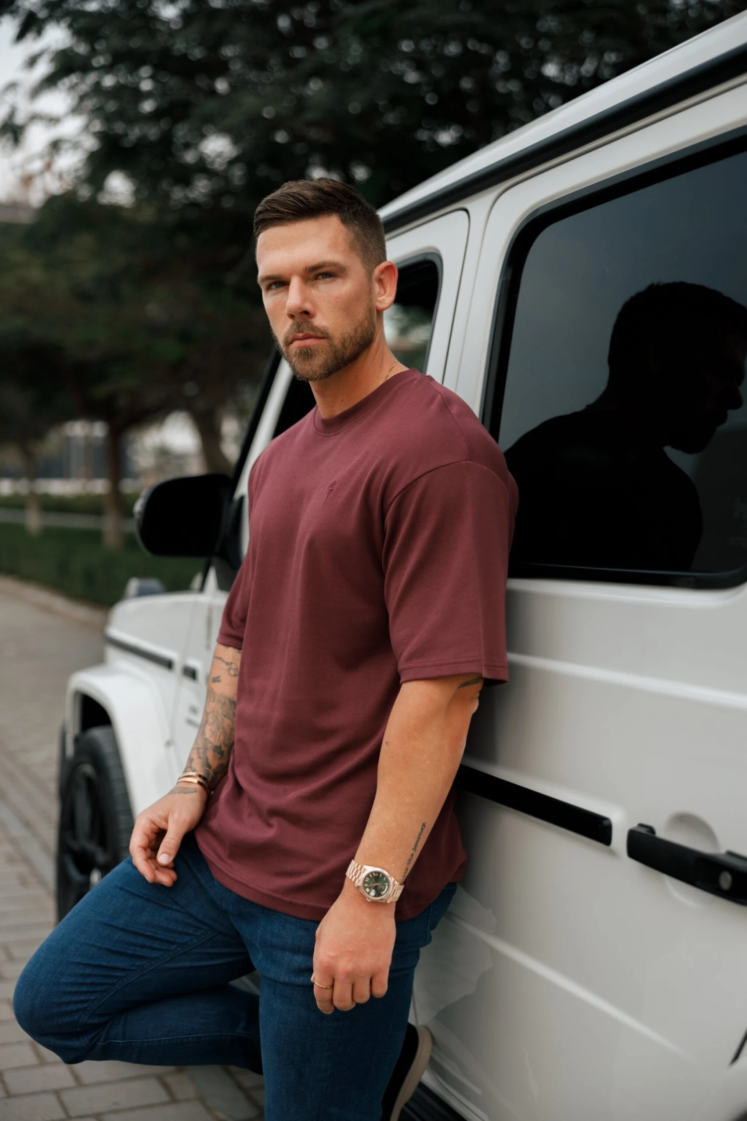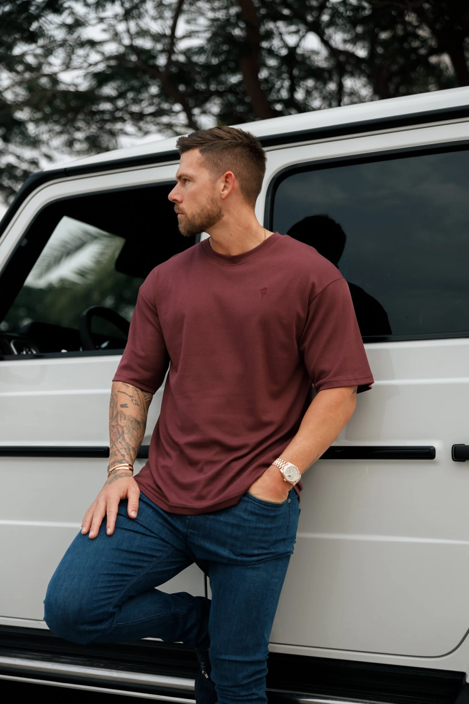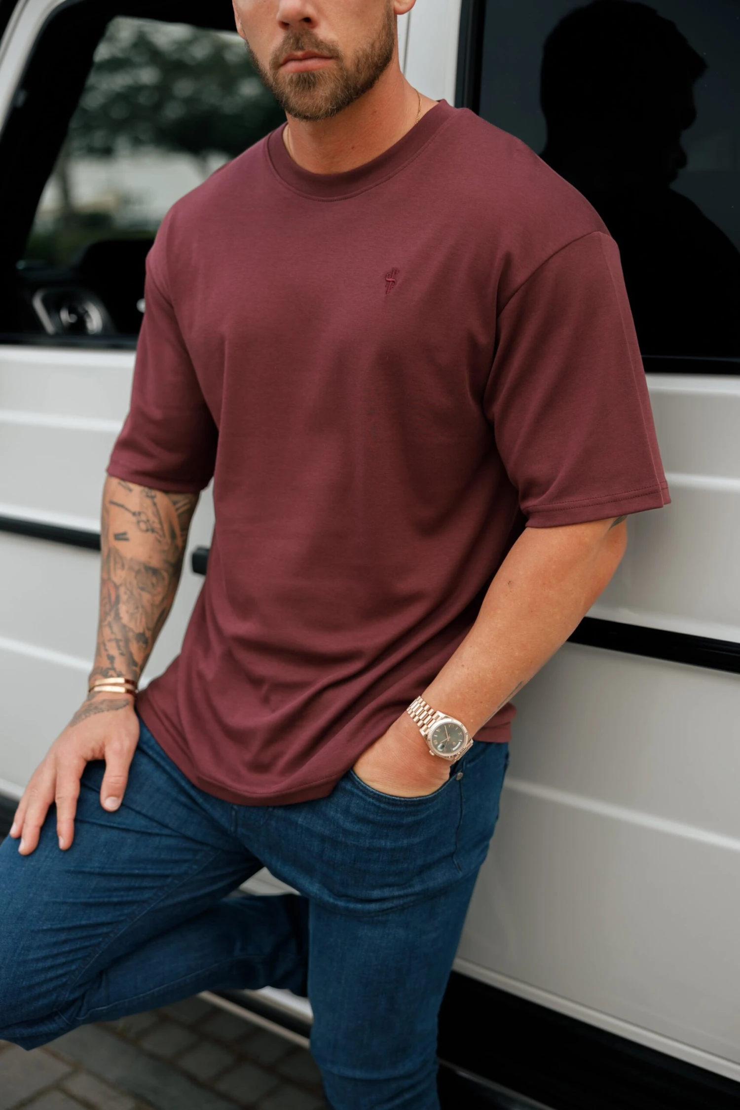 Father Sons Classic Burgundy Oversized Crew T Shirt – FSH868