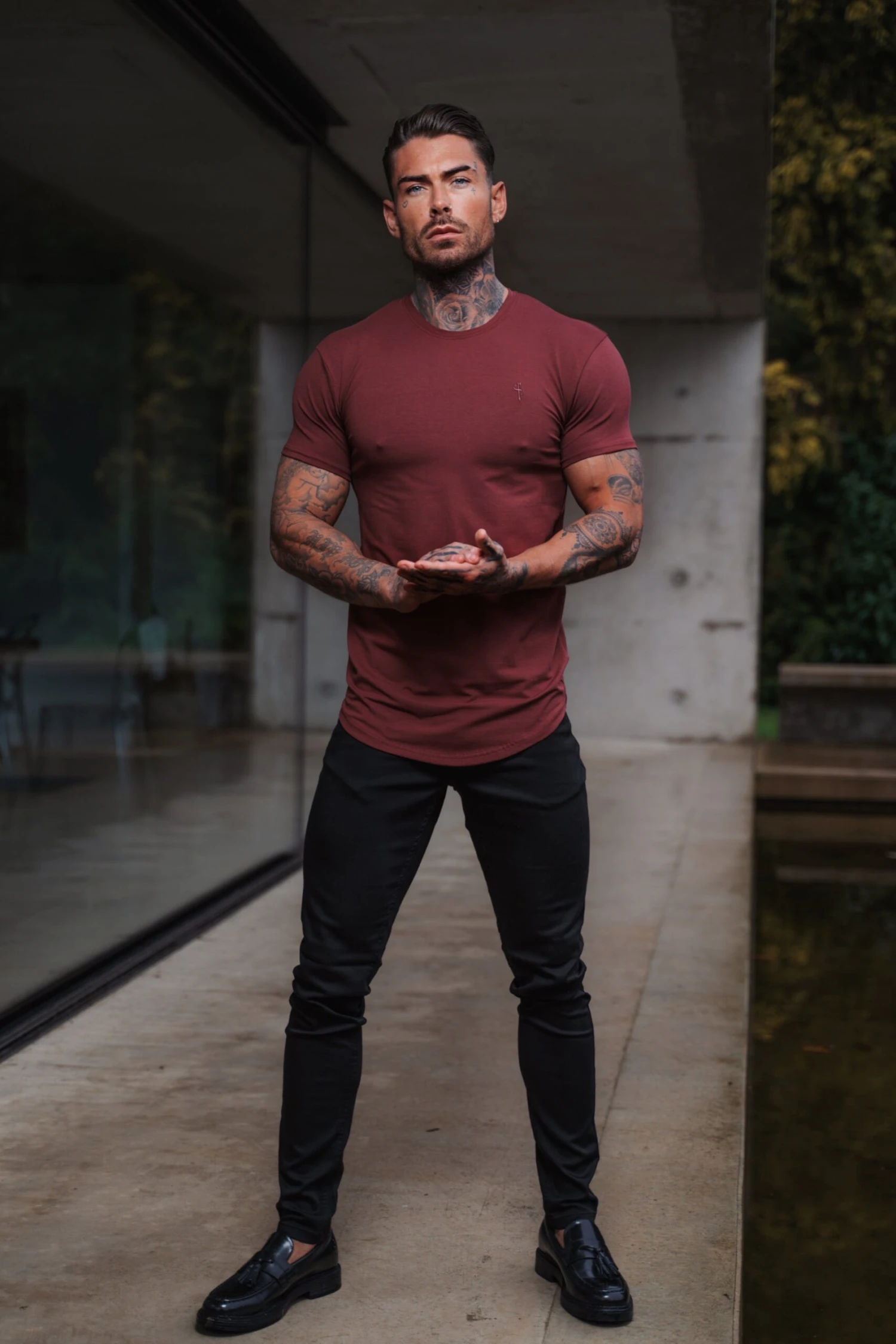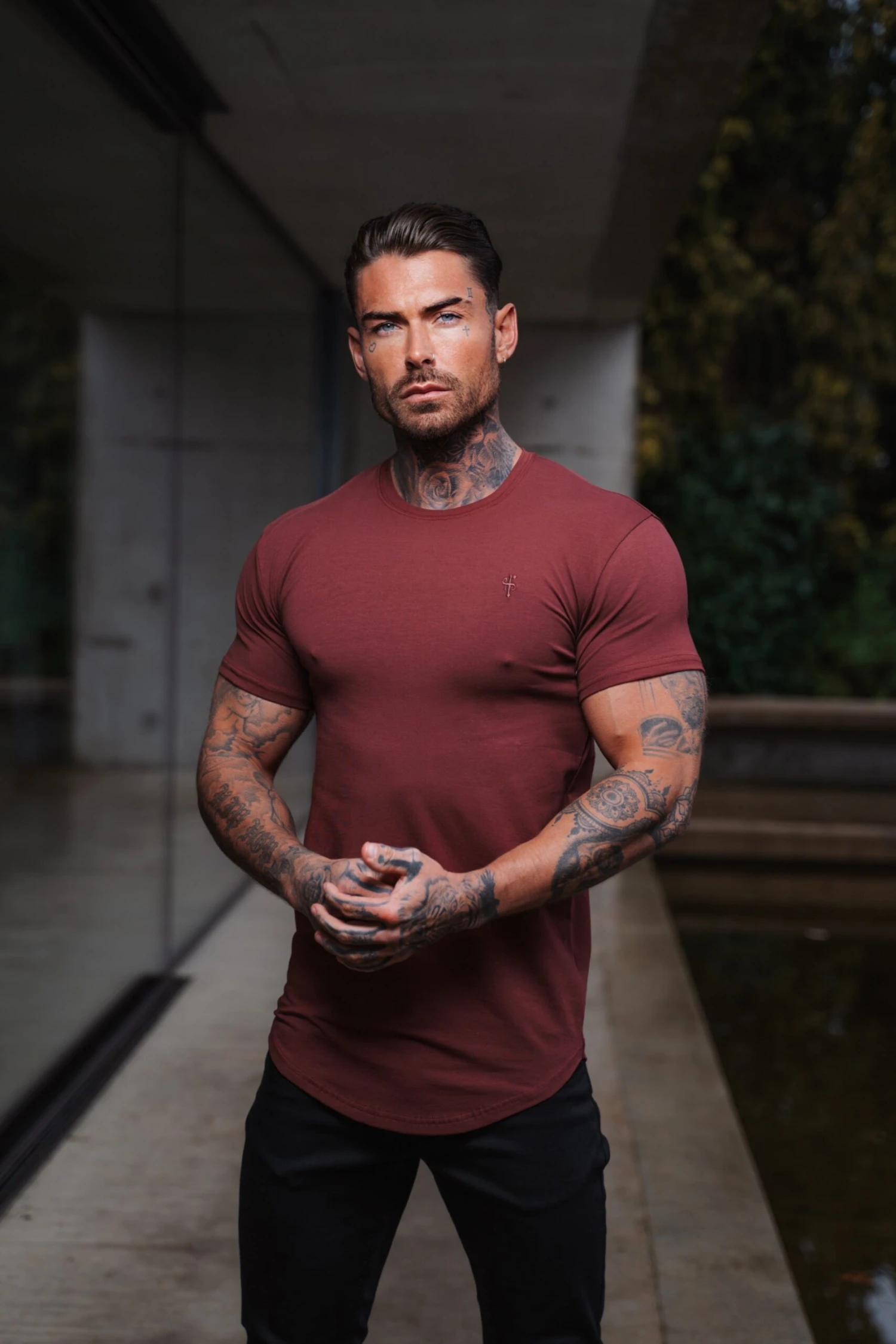 Father Sons Classic Burgundy Tonal Curved Hem Crew T Shirt – FSH926
