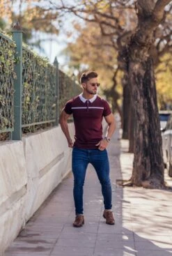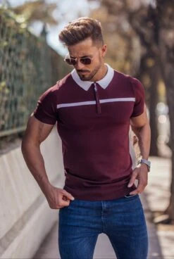 Father Sons Classic Burgundy / White Horizontal Stripe Zipped Polo Short Sleeve – FSN045