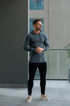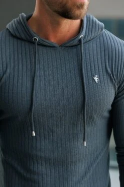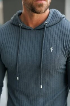 Father Sons Classic Charcoal Ribbed Knit Hoodie Jumper With Silver Emblem – FSH1309
