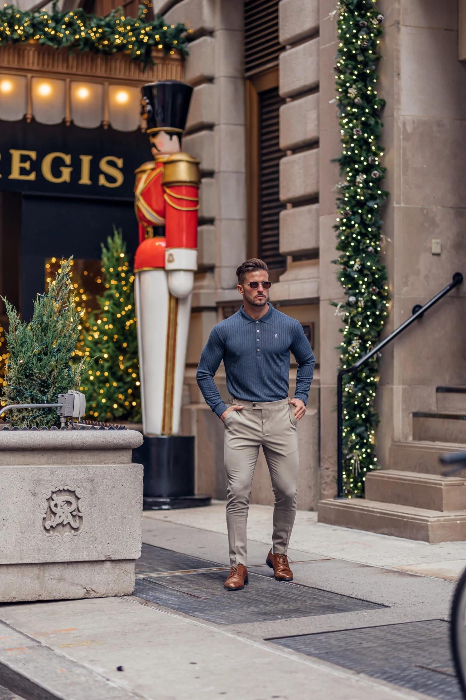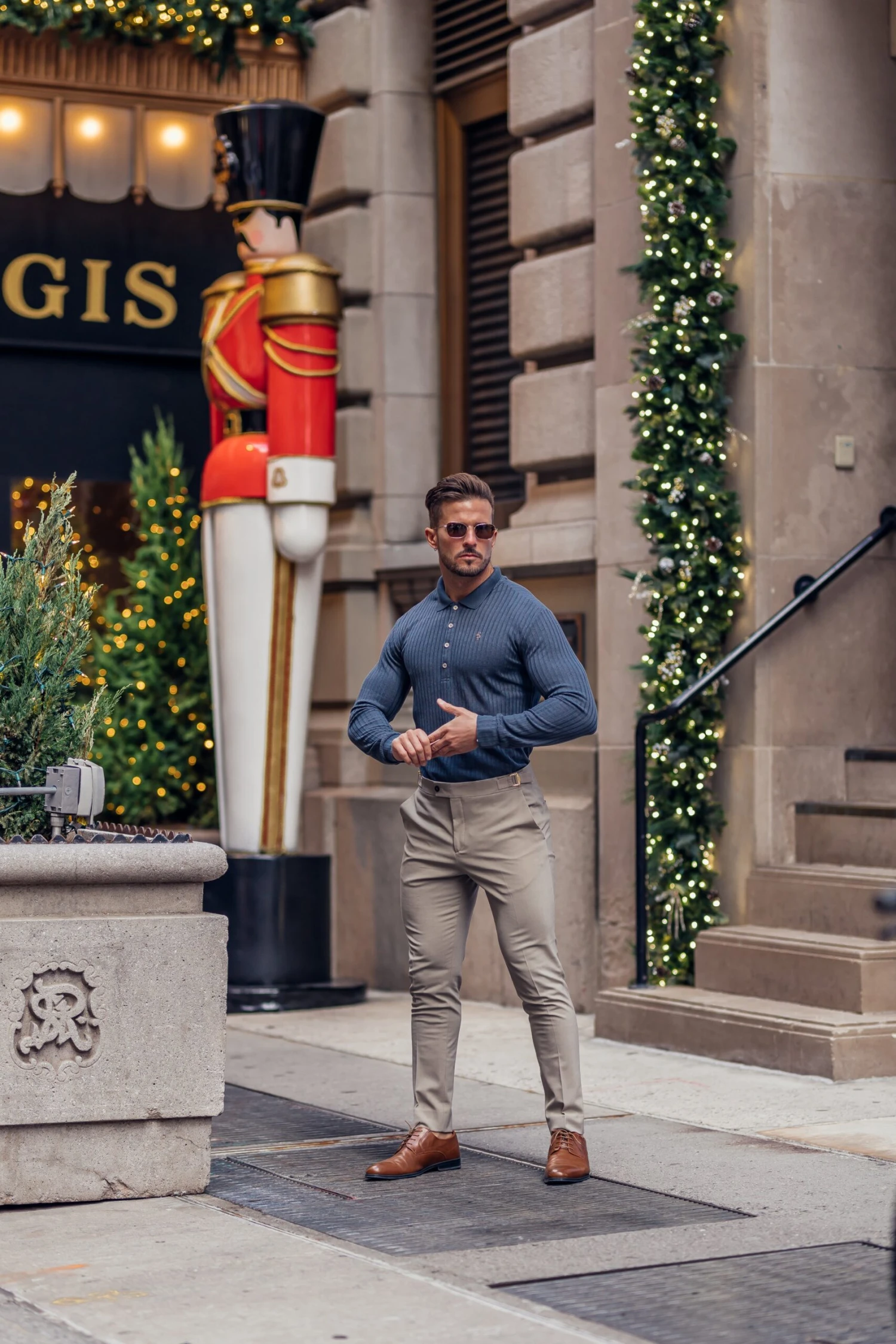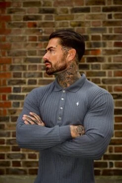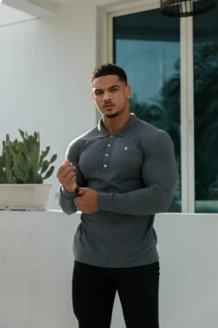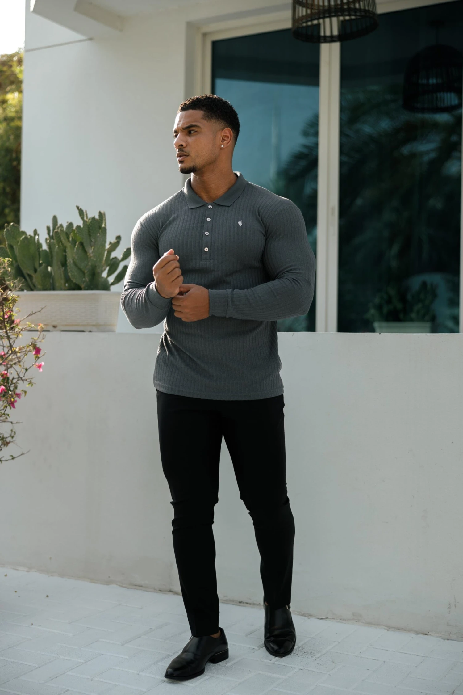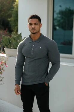 Father Sons Classic Charcoal Ribbed Polo Shirt Long Sleeve With Silver Decal – FSH971