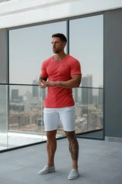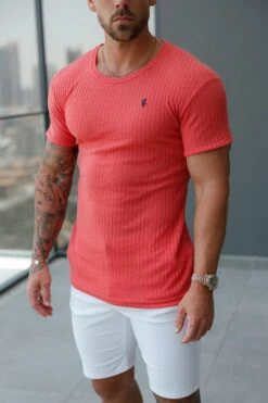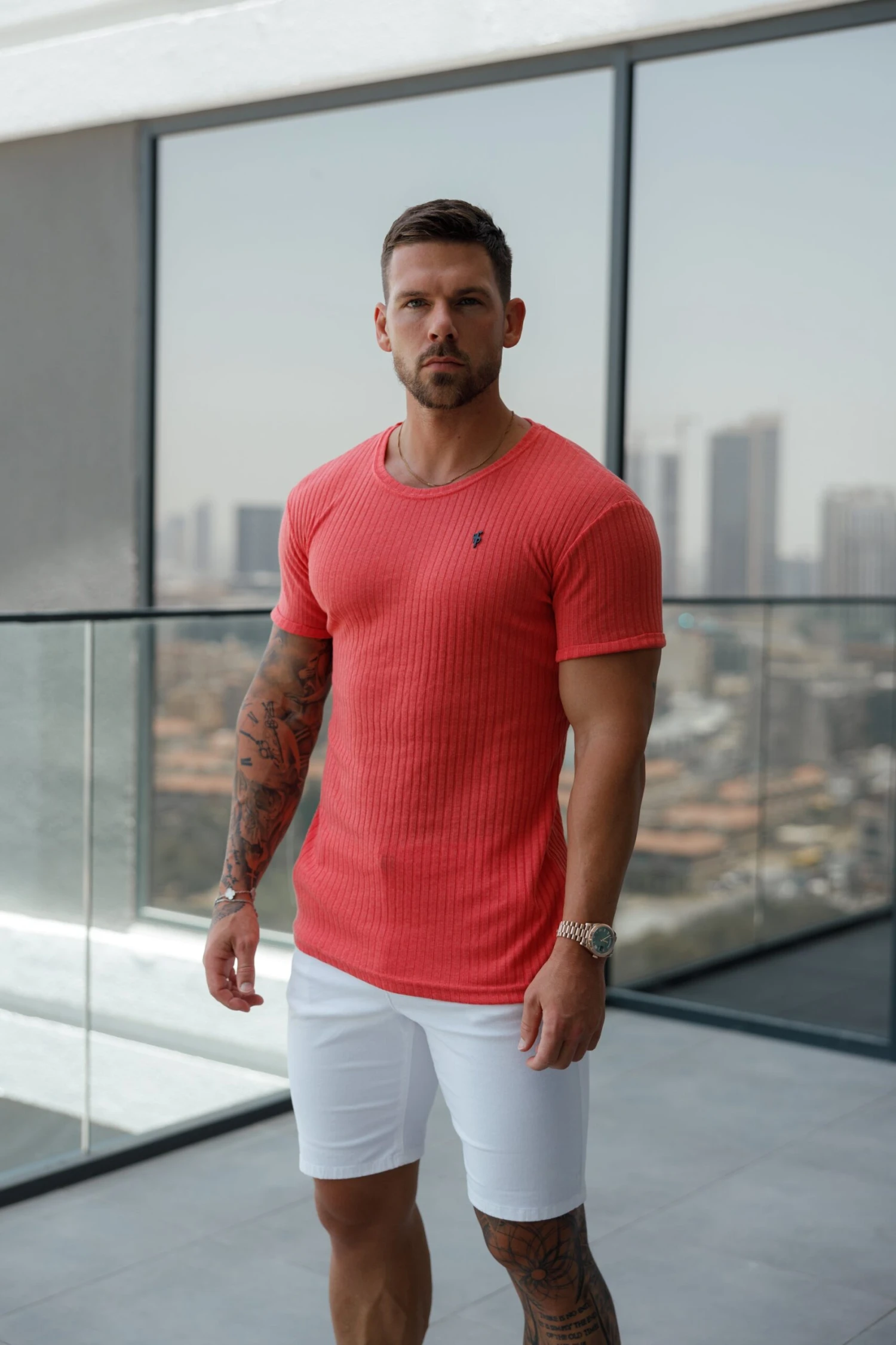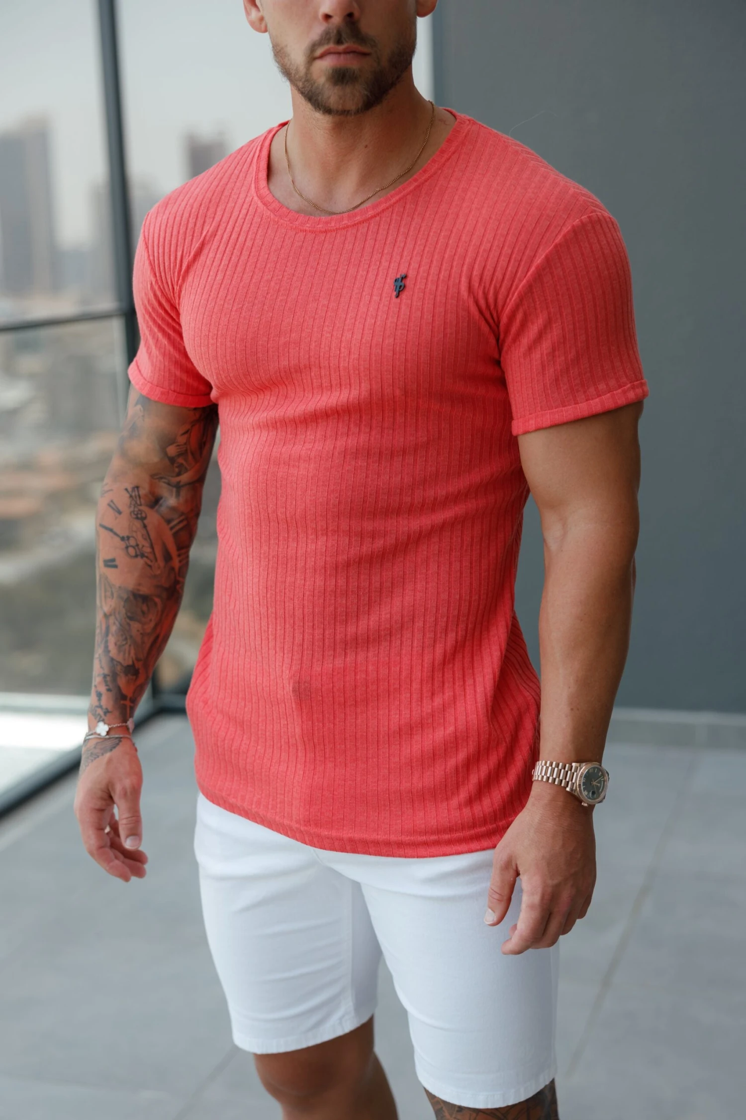 Father Sons Classic Coral / Black Ribbed Knit Super Slim Short Sleeve Crew – FSH1086