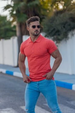 Father Sons Classic Coral Polo Shirt with Tonal Buttons and Embroidery – FSH873