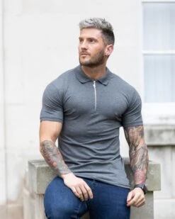 Father Sons Classic Dark Grey and Silver Zipped Polo Shirt – FSH812